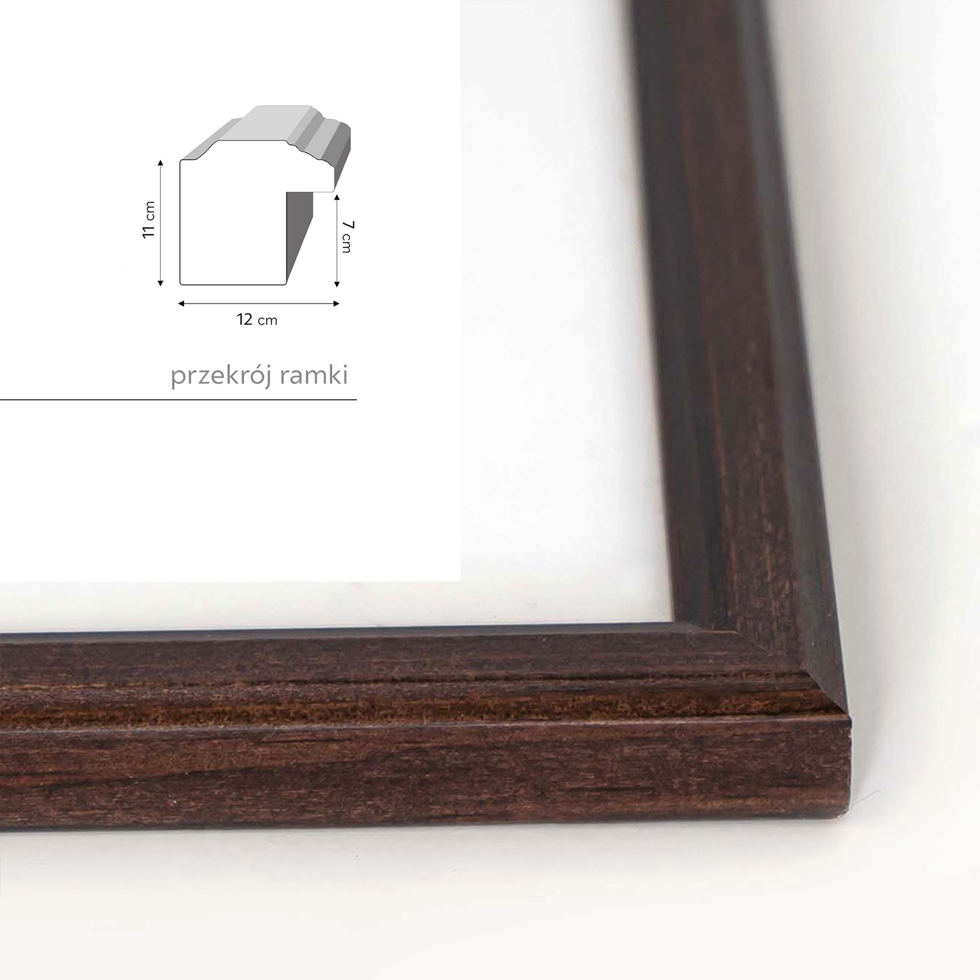 Nowoczesna galeria ścienna Presto 44 GF0001 składająca się z trwałych, wysokiej jakości ramek wykonanych całkowicie ze starannie dobranego polskiego drewna. Tak w 100% z litego drewna! - nie jest to drewnopochodny MDF prasowany z lepikami wiór oklejany papierem. Ambitny, profilowany kształt przekroju ramki nadaje mu lekkości i elegancji. Profil drewniany o przekroju 12x11 mm jest bardzo stabilny, a zastosowane do połączenia zszywki typu „V-nail” gwarantują doskonale spasowane narożniki co sprawia, że oprawione pamiątki będą cieszyły oko przez długi czas. Ramki w zastawie z kolekcji Presto 44 GF0001 charakteryzują się subtelnym wyglądem i szerokim wachlarzem kształtów od prostych mini galerii do rozbudowanych zestawów. Dostępne są w wielu wersjach kolorystycznych od neutralnej białej, zawsze eleganckiej czerni, ciepłego naturalnego drewna, uniwersalnego brązu, subtelnego srebra i szlachetnego złota.