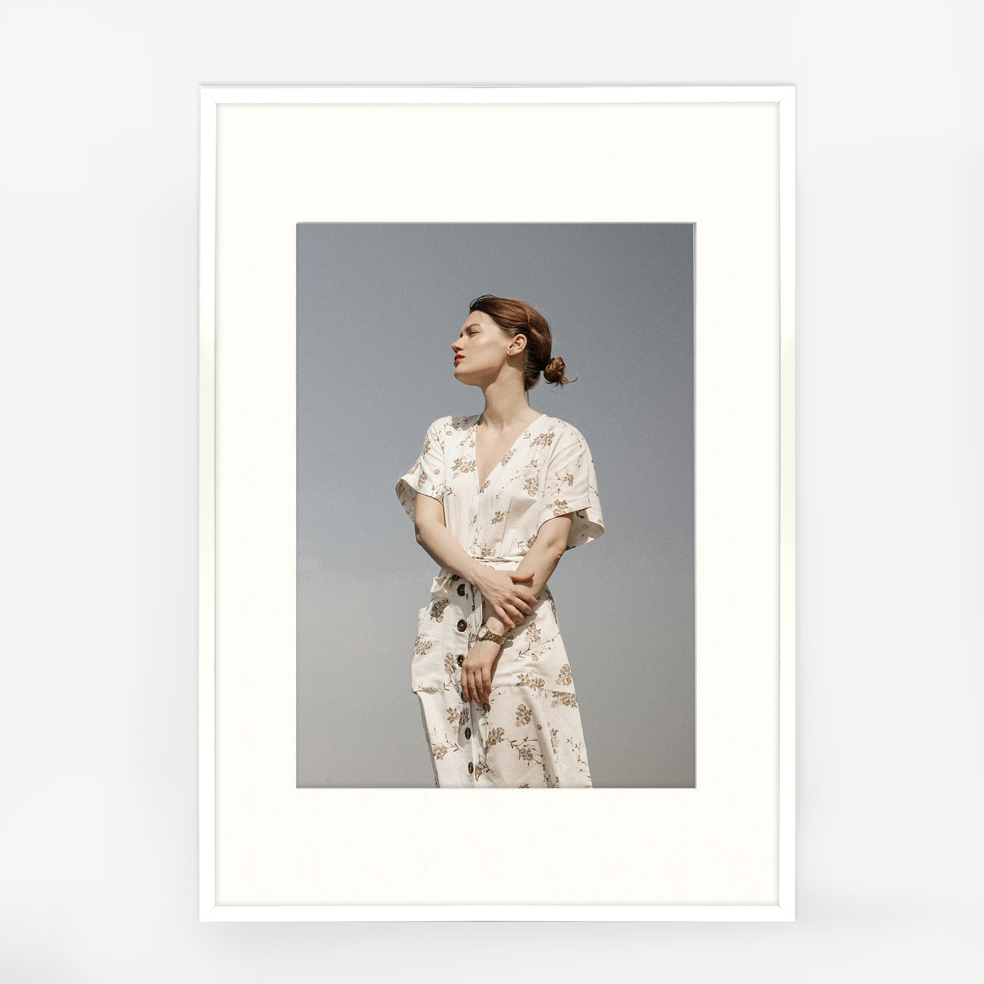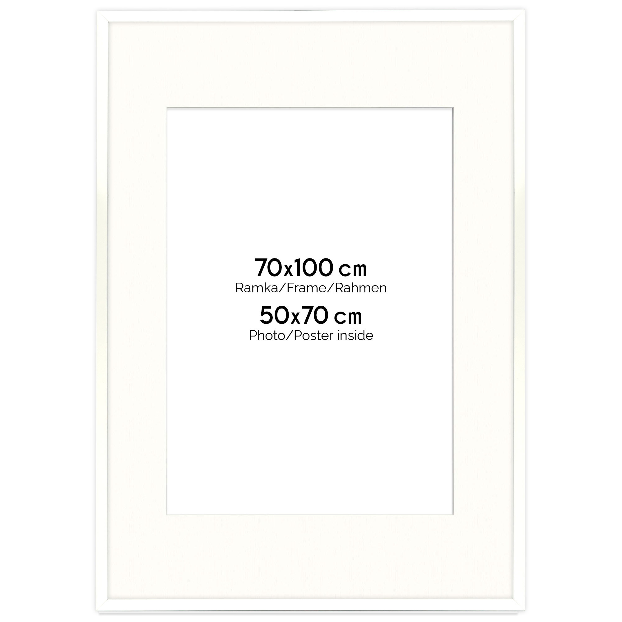 Biała ramka z passe partout na zdjęcia w rozmiarze 70X100 cm z okienkiem passe partout 50x70 cm