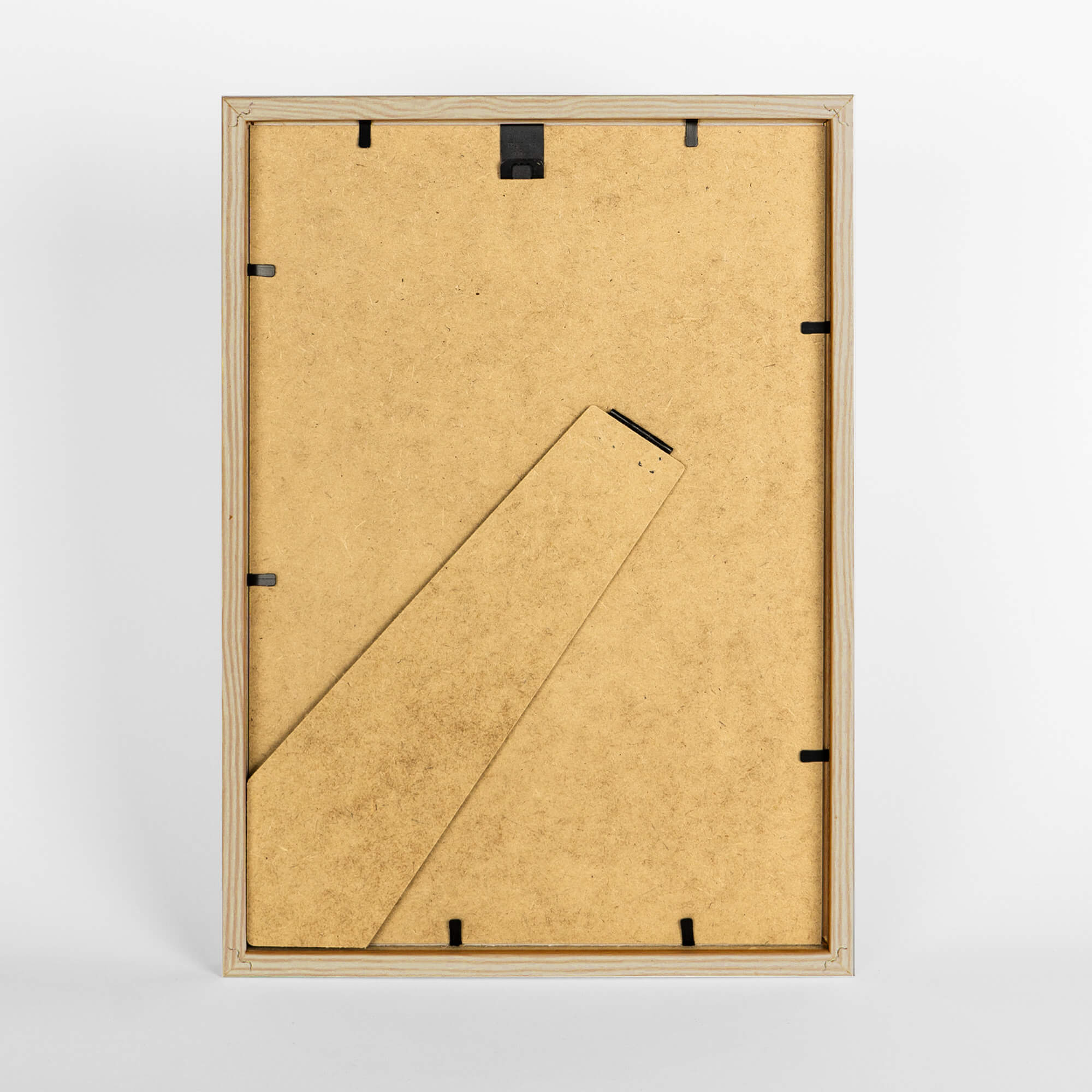Ramka z przodu posiada grubą na 2mm plexi chroniąca zdjęcia lub grafiki przed czynnikami zewnętrznymi. Plecki ramki wykonane są z twardej płyty HDF o grubości 3 mm. Wymiar profilu to odpowiednio szerokość 13 mm i wysokość 20 mm. Ramka MDF posiada z tyłu miękkie blaszki mocujące, które pozwalają wielokrotnie otwierać i wymieniać zdjęcia.