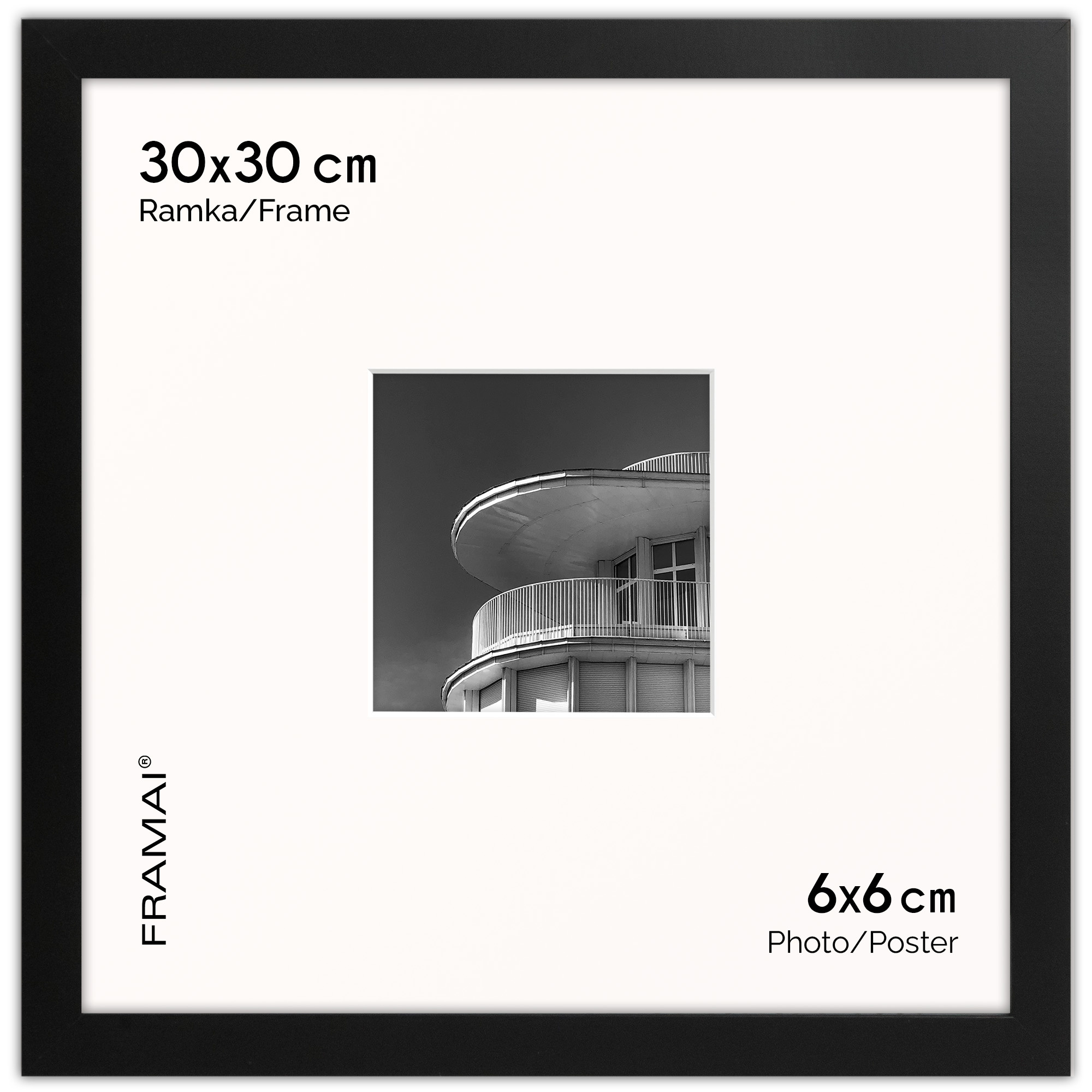 Czarna ramka z passe partout na zdjęcia w rozmiarze 30x30 cm z okienkiem passe partout 6x6 cm