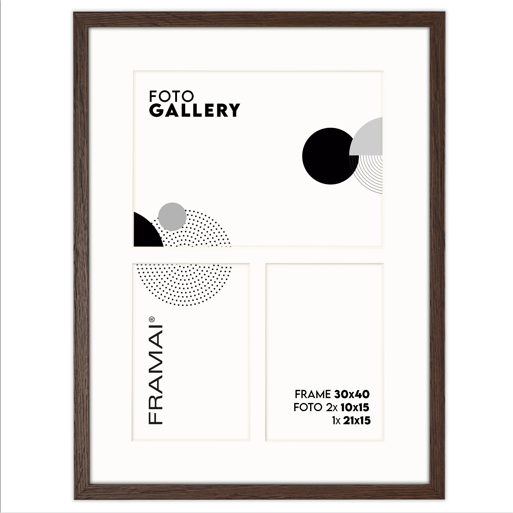 Foto Galeria na 3 zdjęcia - FG-M6 30x40 cm (wymiar ramy wewnętrzny) odpowiednia do oprawy dwóch zdjęć o formacie 10x15 cm i jednego o formacie 15x21 cm. Kolor ramki brązowy