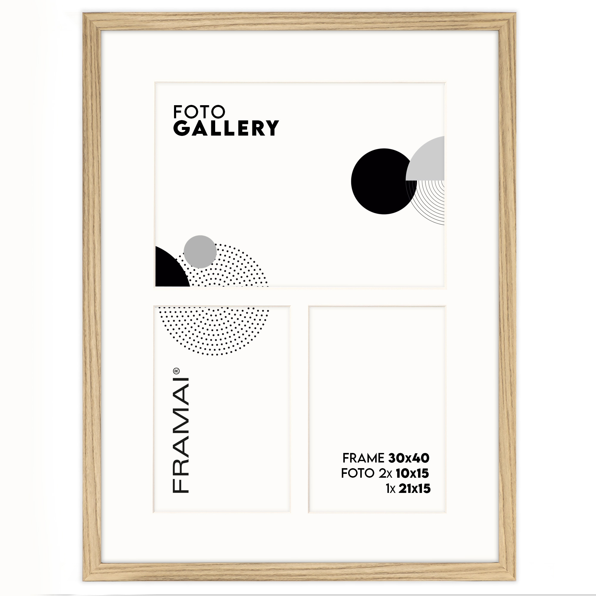 Foto Galeria na 3 zdjęcia - FG-M02 30x40 cm (wymiar ramy wewnętrzny) odpowiednia do oprawy dwóch zdjęć o formacie 10x15 cm i jednego o formacie 15x21 cm. Kolor ramki dębowy