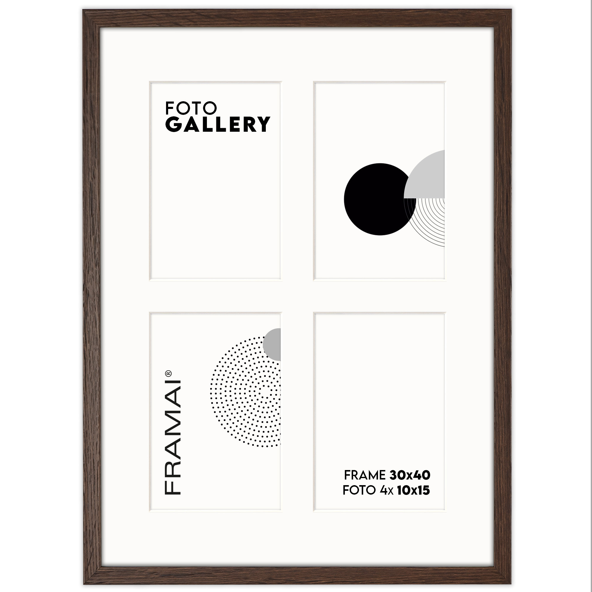 Foto Galeria na 4 zdjęcia - FG-M6 30x40 cm (wymiar ramy wewnętrzny) odpowiednia do oprawy czterech zdjęć o formacie 10x15 cm. Kolor ramki brązowy