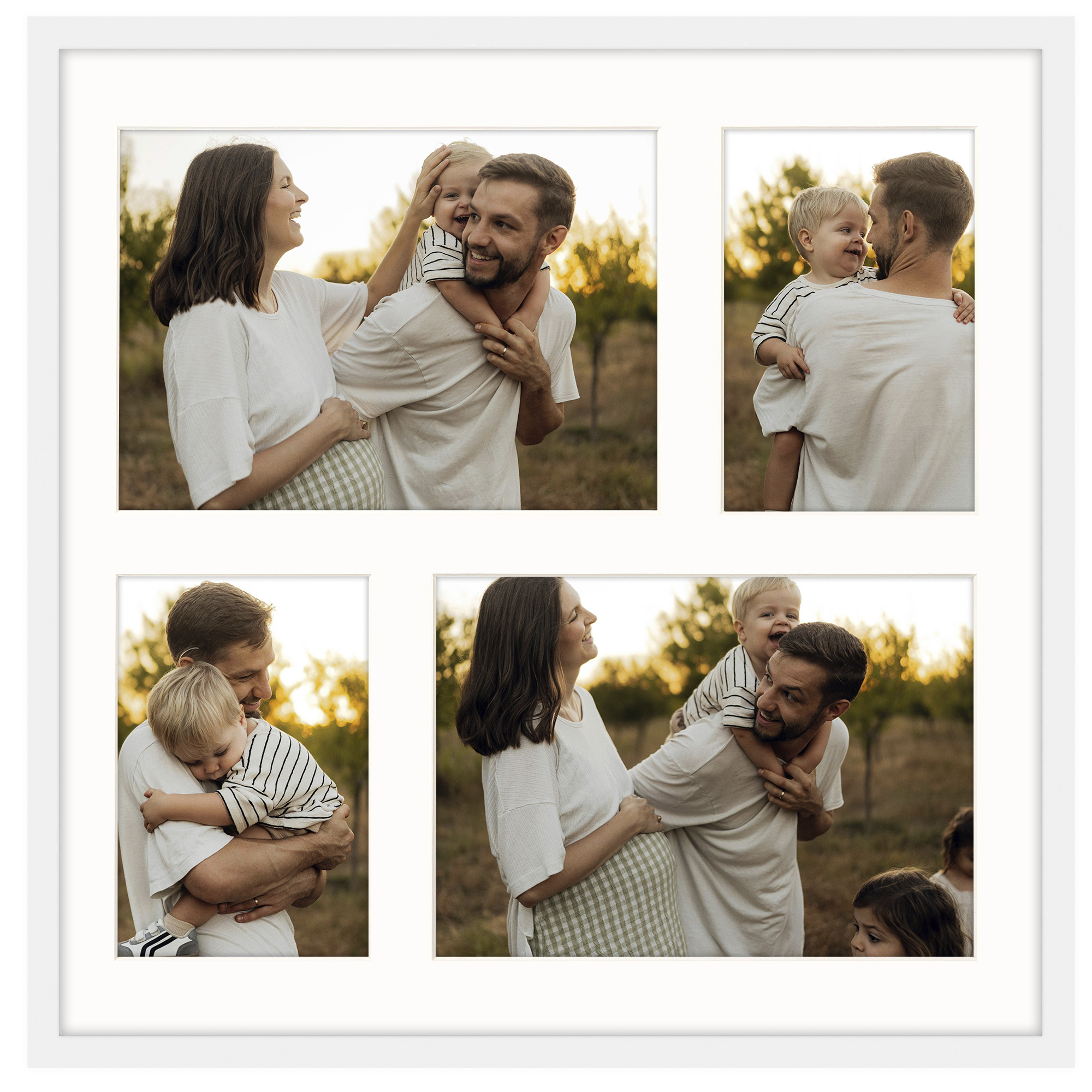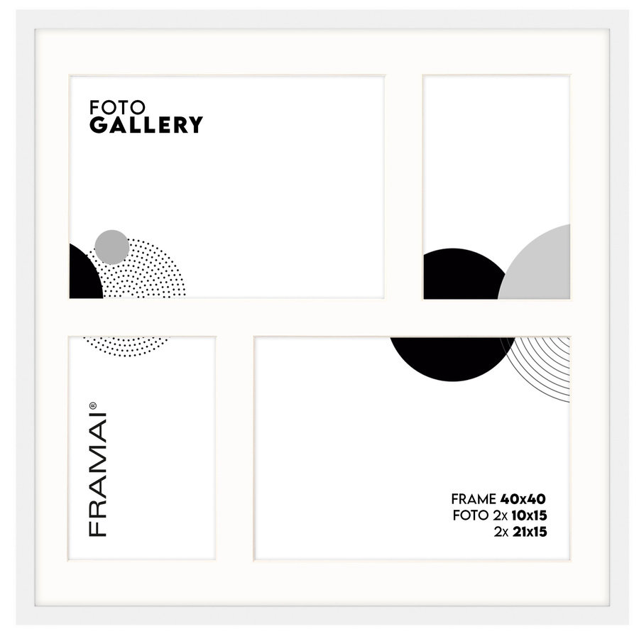 Foto Galeria na 4 zdjęcia - FG-M1 40x40 cm (wymiar ramy wewnętrzny) odpowiednia do oprawy dwóch zdjęć o formacie 10x15 cm i dwóch zdjęć o formacie 15x21 cm. Kolor ramki biały