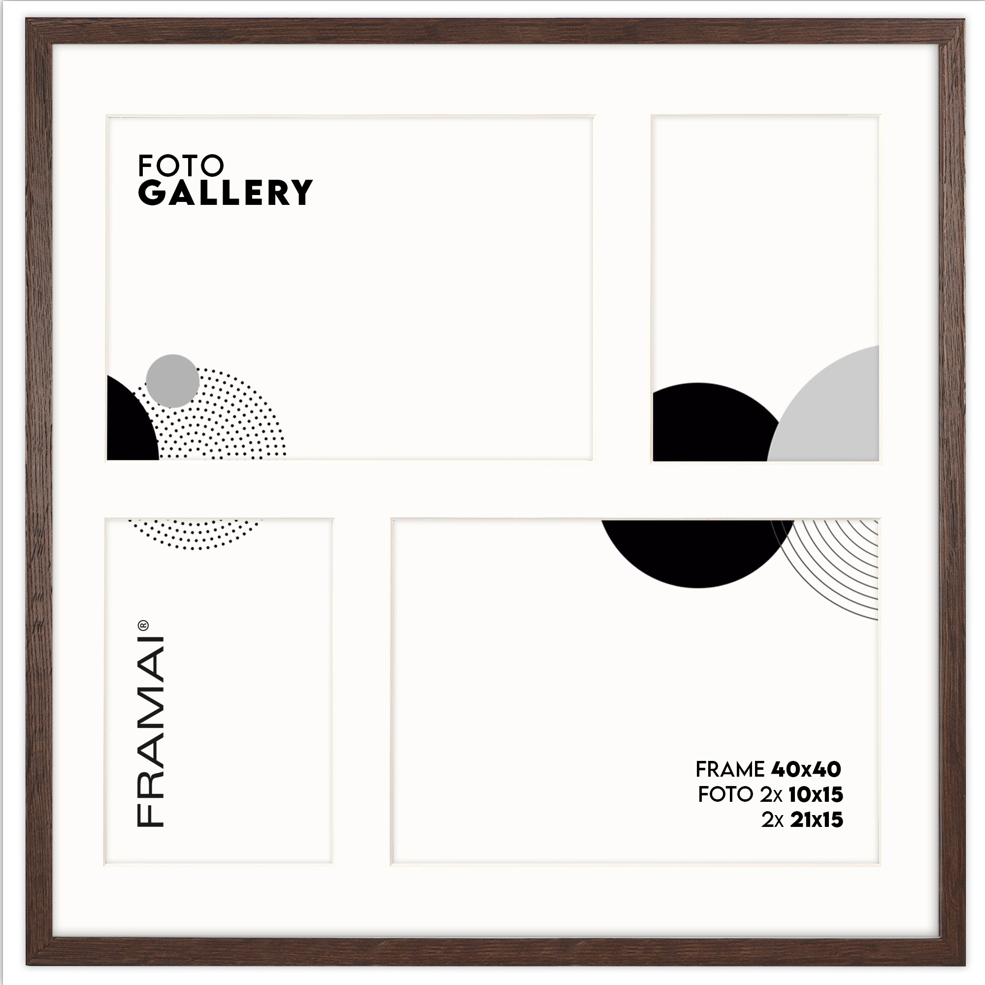Foto Galeria na 4 zdjęcia - FG-M6 40x40 cm (wymiar ramy wewnętrzny) odpowiednia do oprawy dwóch zdjęć o formacie 10x15 cm i dwóch zdjęć o formacie 15x21 cm. Kolor ramki brązowy