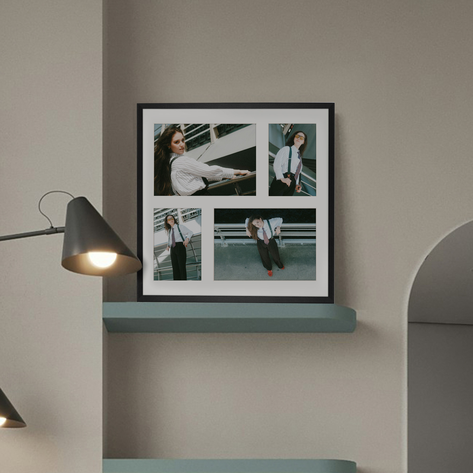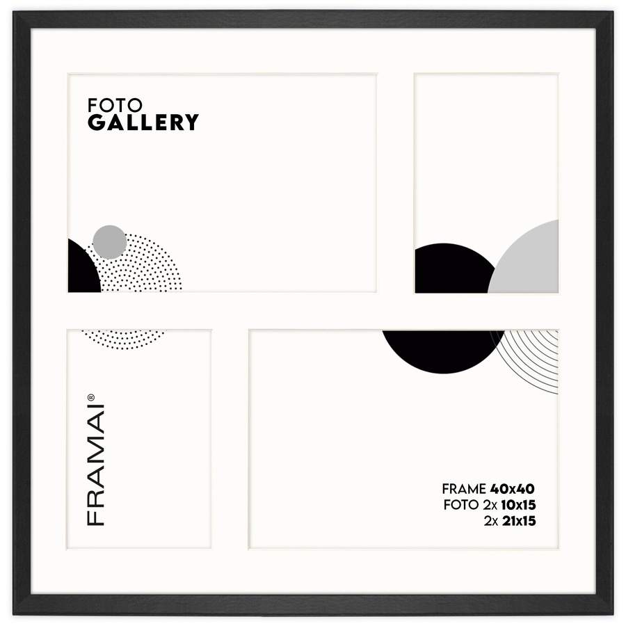 Foto galeria 40x40 cm na 4 zdjęcia o wymiarach 10x15 cm i 15x21 cm w czarnym kolorze