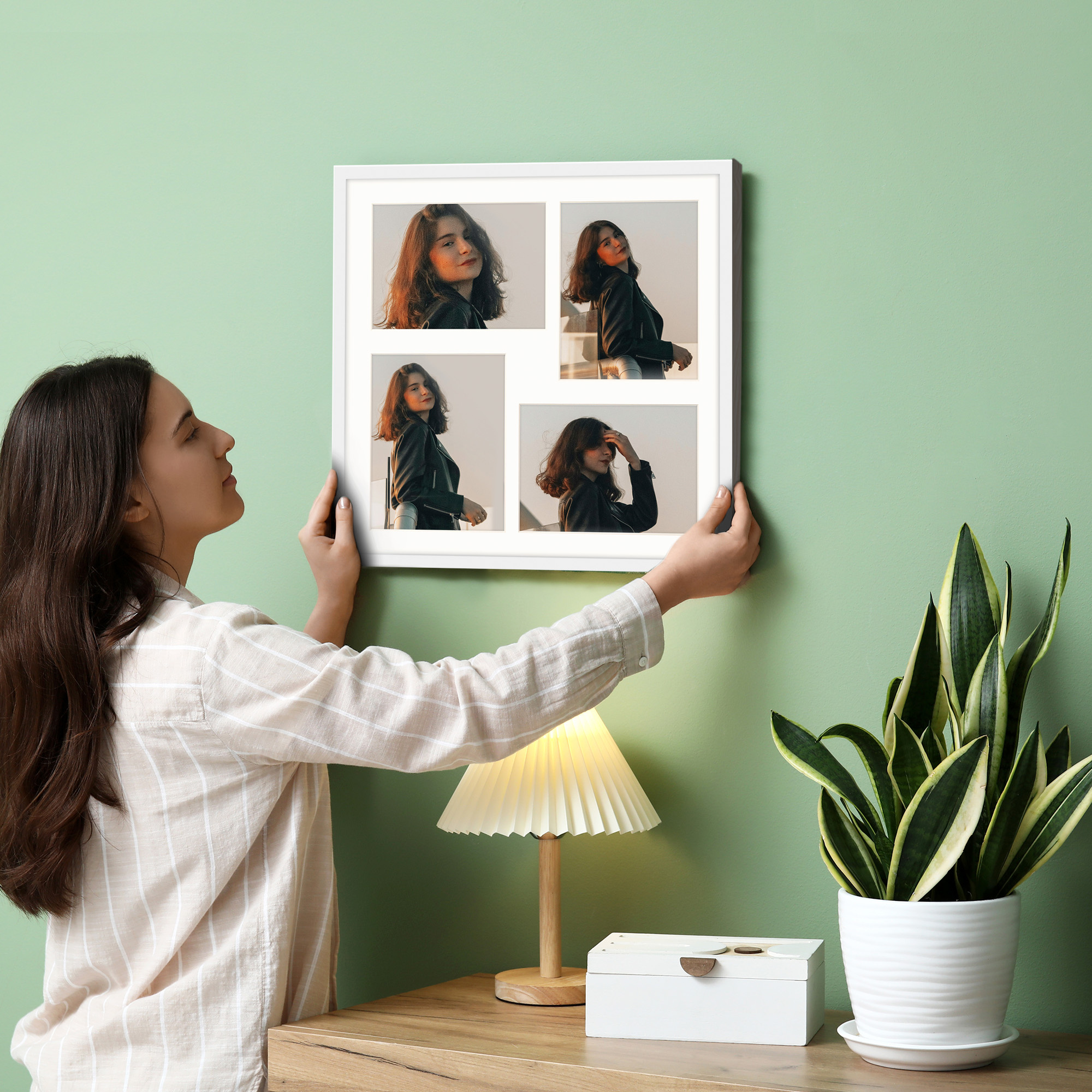 Foto Galeria na 4 zdjęcia - FG-M1 40x40 cm (wymiar ramy wewnętrzny) odpowiednia do oprawy czterech zdjęć o formacie 13x18 cm. Kolor ramki biały
