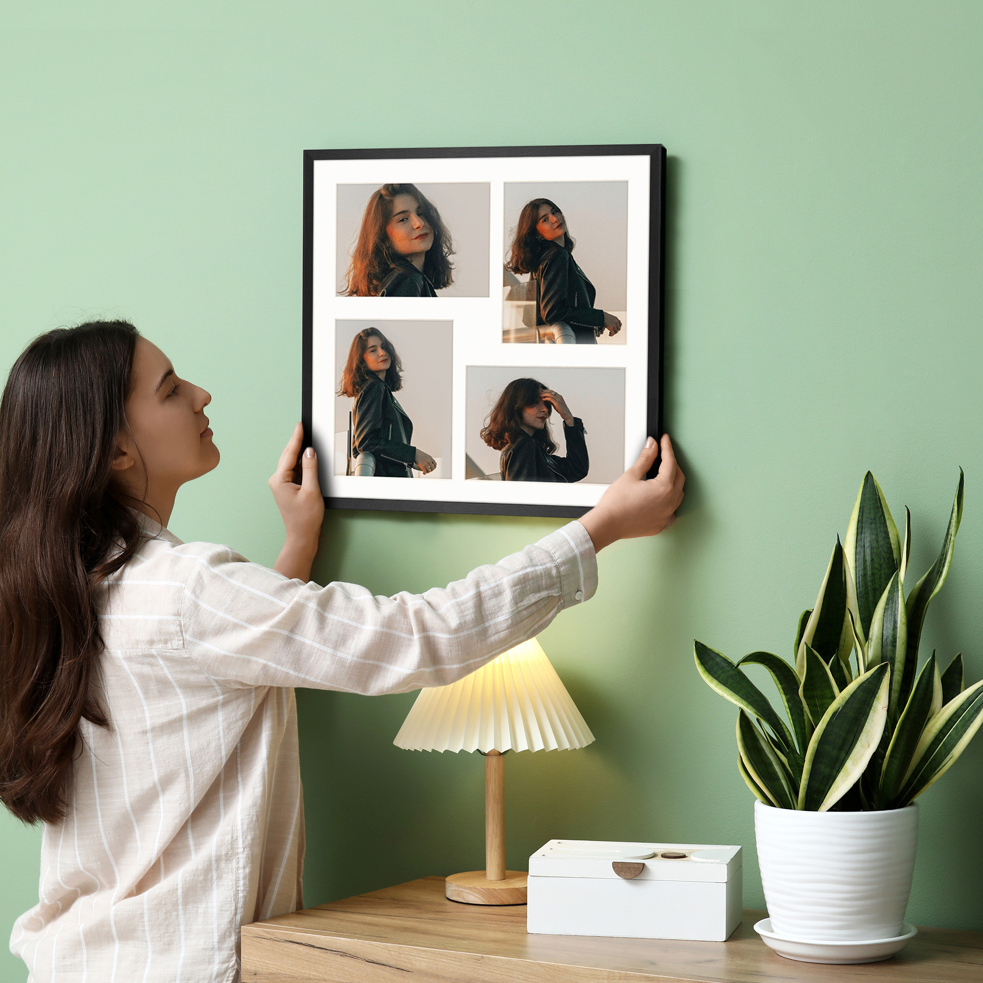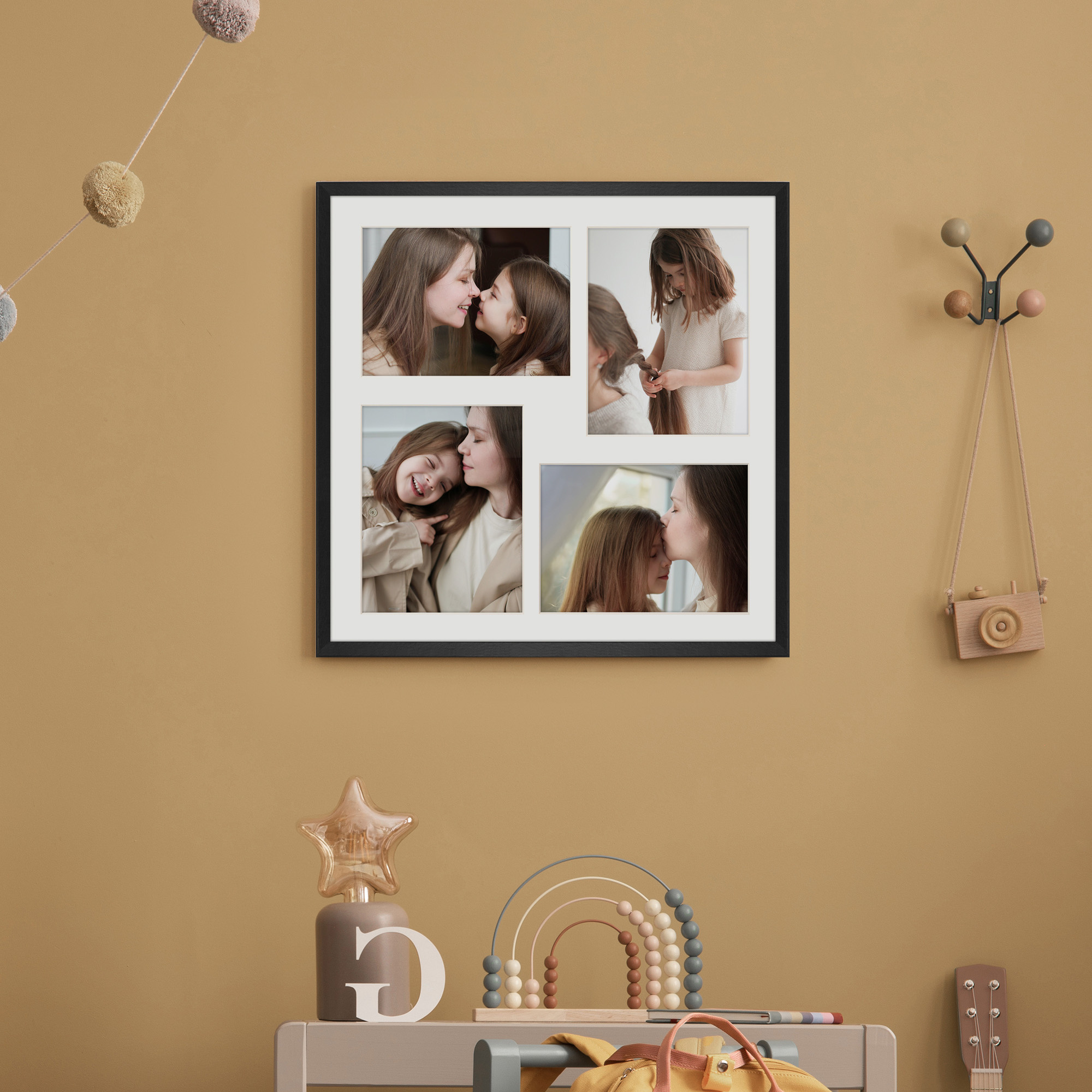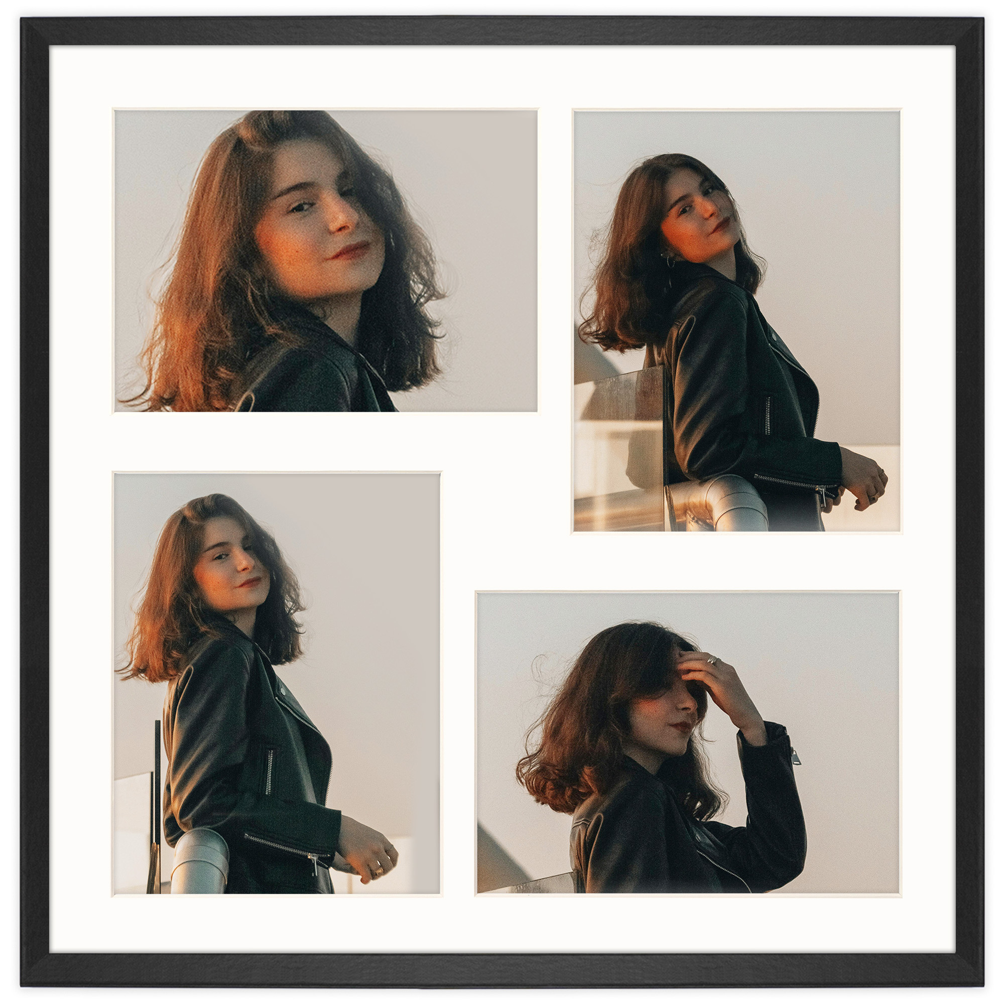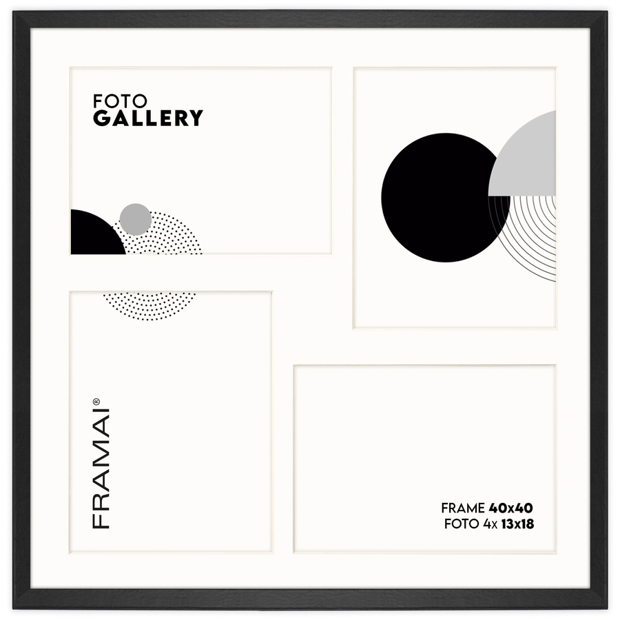 Foto Galeria na 4 zdjęcia - FG-M2 40x40 cm (wymiar ramy wewnętrzny) odpowiednia do oprawy czterech zdjęć o formacie 13x18 cm. Kolor ramki czarny