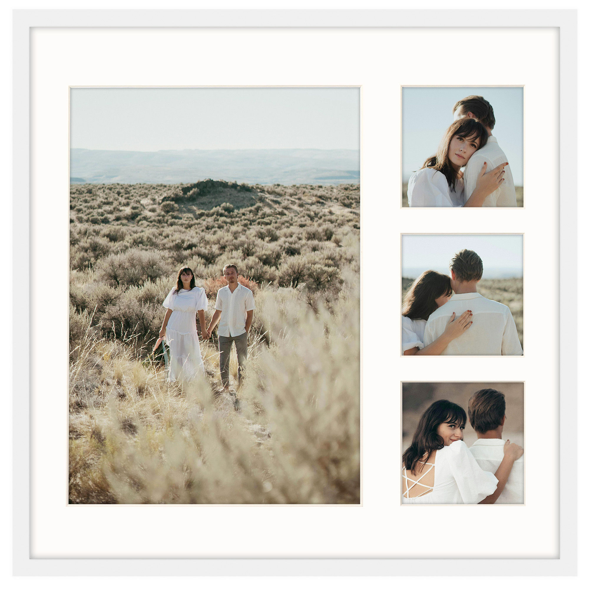 Foto Galeria na 4 zdjęcia - FG-M1 40x40 cm (wymiar ramy wewnętrzny) odpowiednia do oprawy jednego zdjęcie o formacie 21x30 cm i trzech zdjęć o formacie 9x9cm. Kolor ramki biały