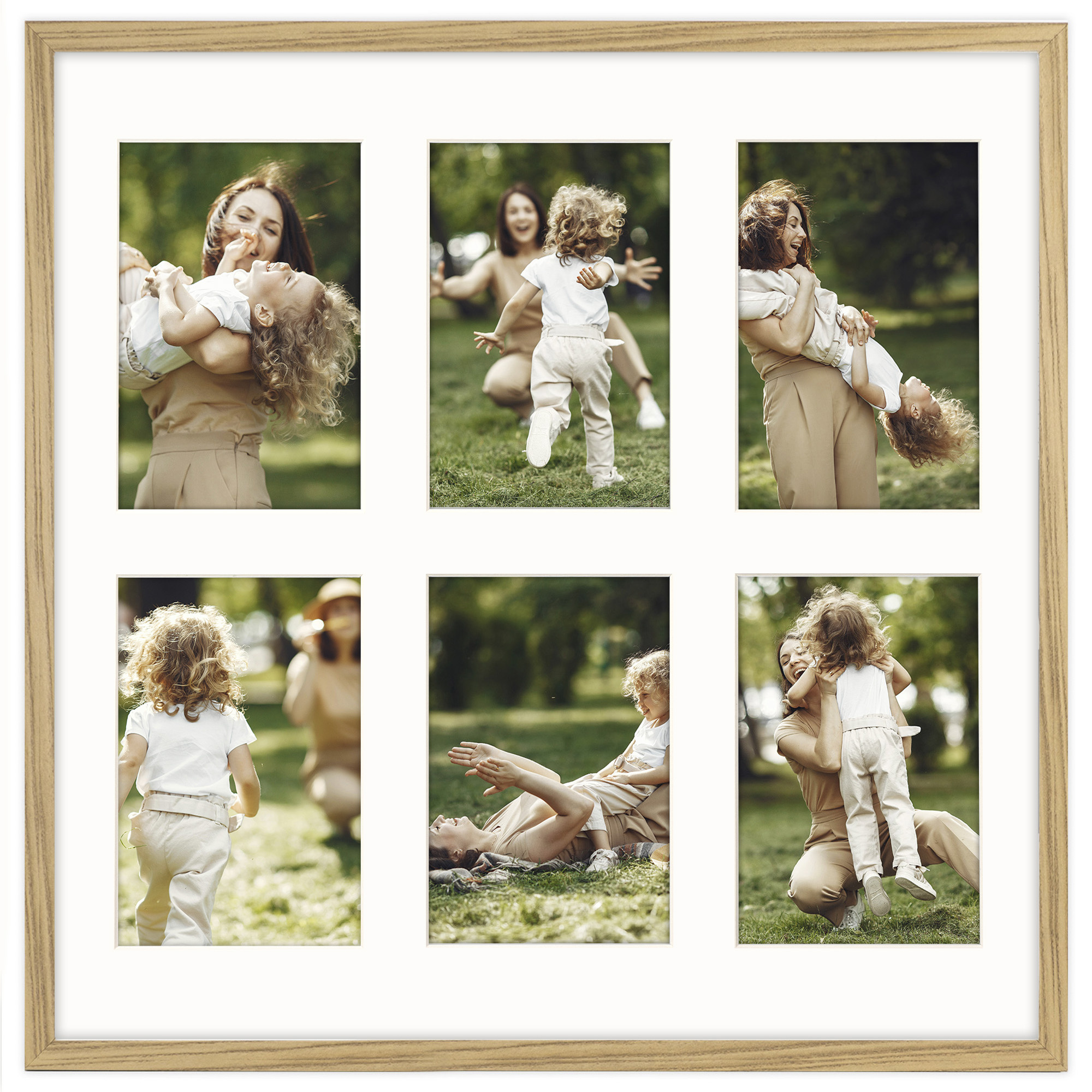 Foto Galeria na 6 zdjęcia - FG-M02 40x40 cm (wymiar ramy wewnętrzny) odpowiednia do oprawy sześciu zdjęć o formacie 10x15 cm. Kolor ramki dębowy