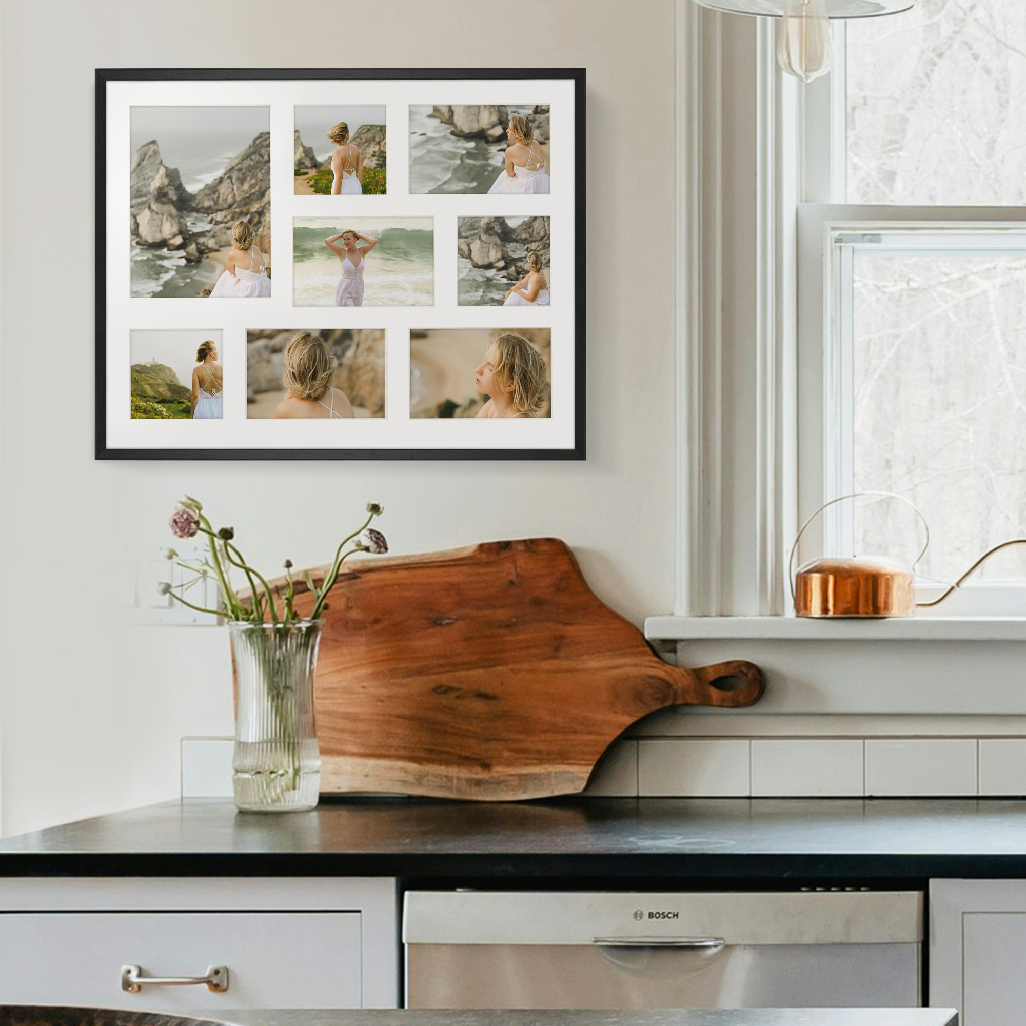 Foto Galeria na 7 zdjęć - FG-M2 40x50 cm (wymiar ramy wewnętrzny) odpowiednia do oprawy siedmiu zdjęć o formatach 10x10 cm, 10x15 cm i 15x21 cm. Kolor ramki czarny
