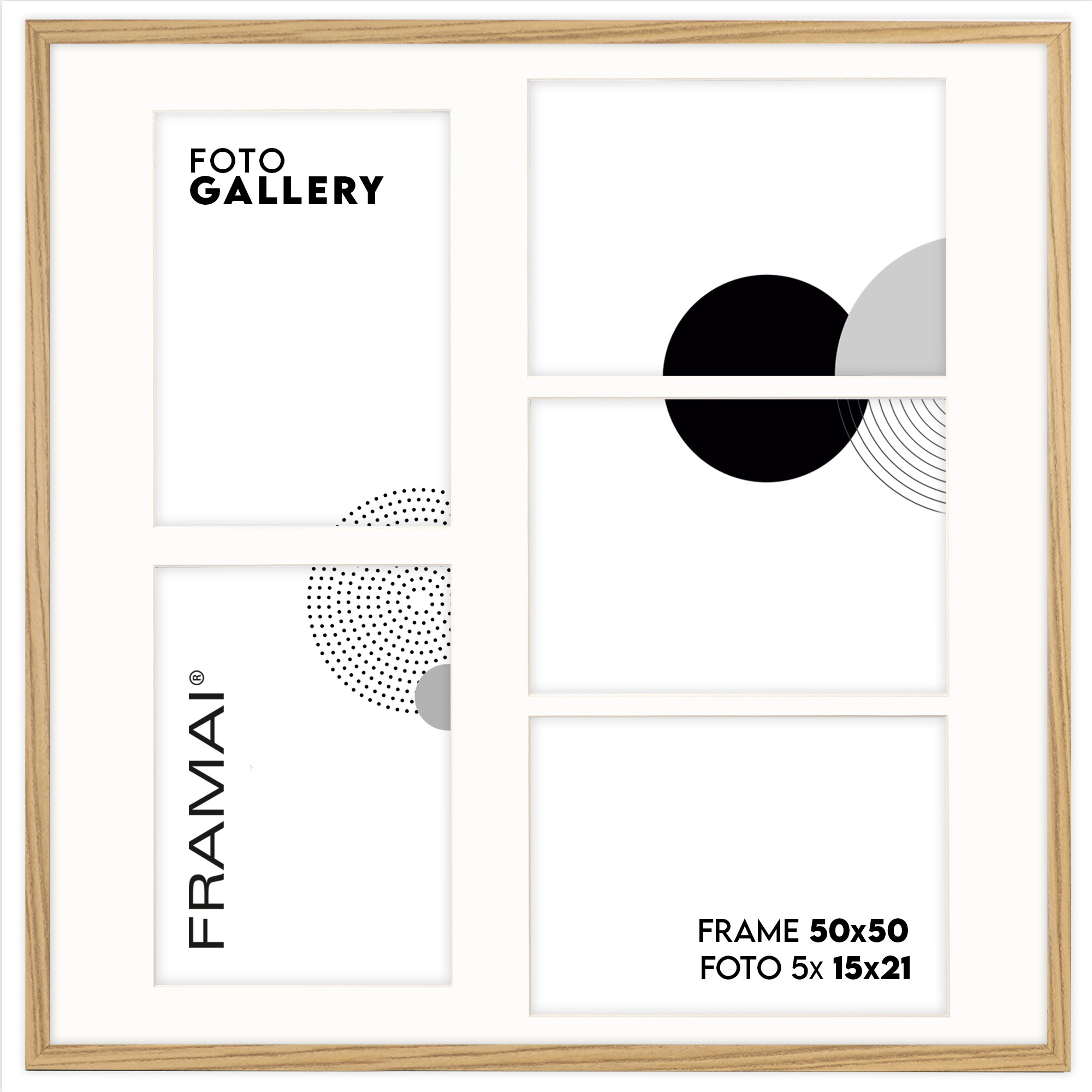 Foto galeria 50x50 cm na 5 zdjęć o wymiarze 15x21 cm kolor dębowy