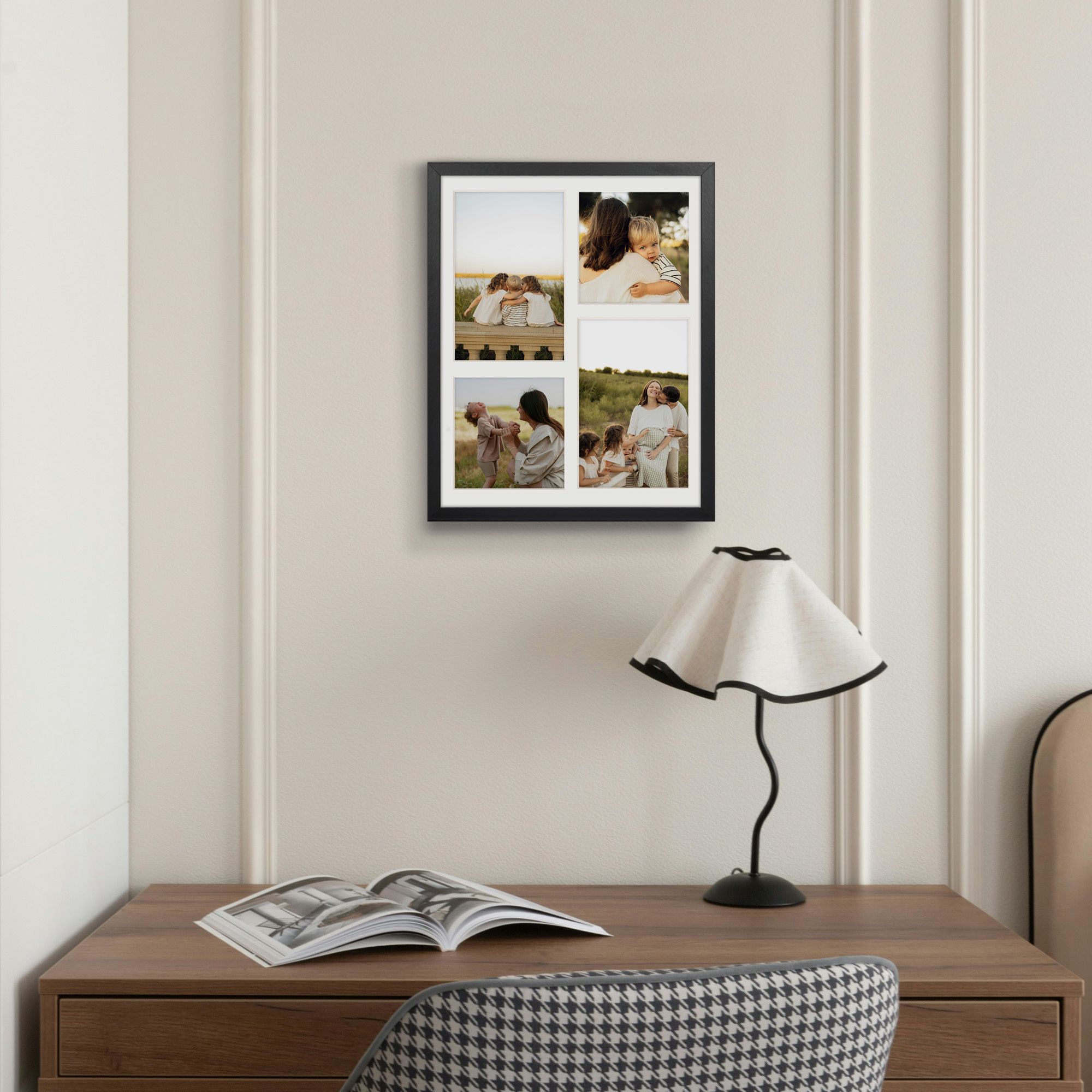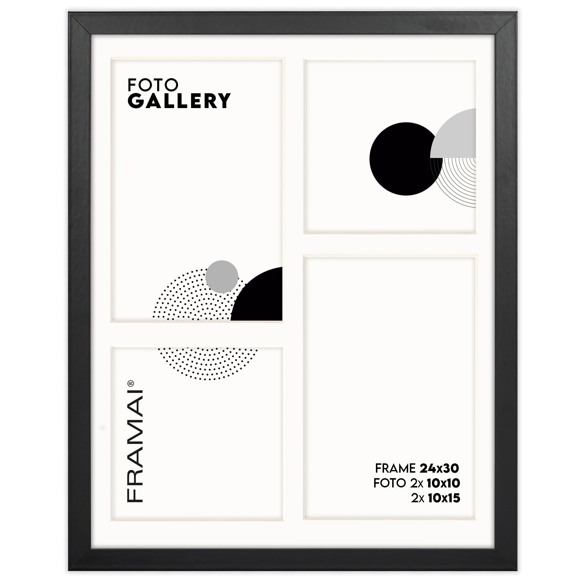 Foto Galeria na 4 zdjęcia - FG-M2 24x30 cm (wymiar ramy wewnętrzny) odpowiednia do oprawy dwóch zdjęć o formacie 10x15 cm i dwóch o formacie 10x10 cm. Kolor ramki czarny