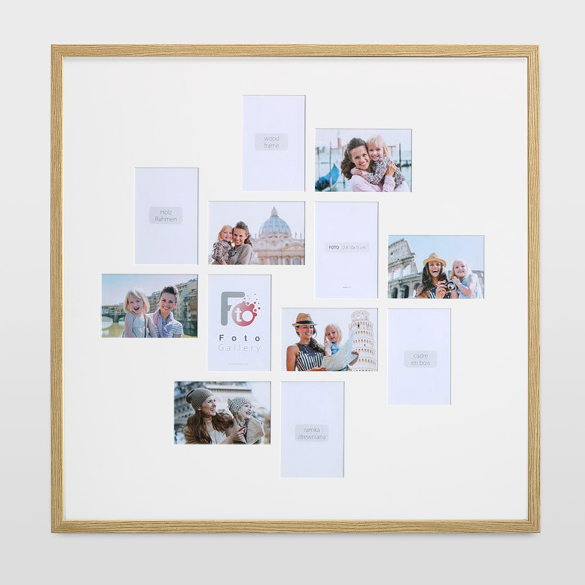 - Foto galeria drewniana ramka z passe partout na kilka zdjęć. Do oprawy zdjęć 12 x 10x15cm. Model: Natural 70x70