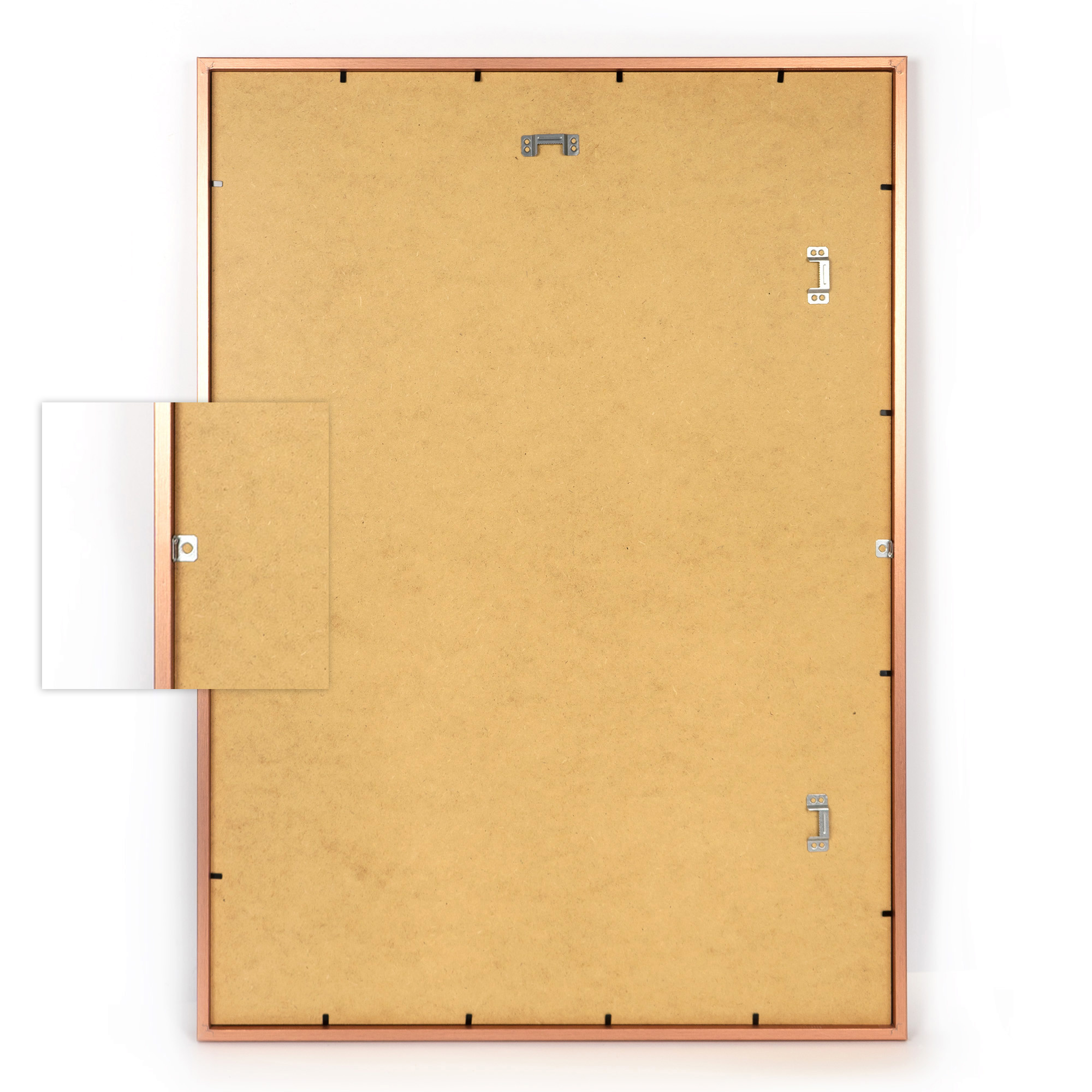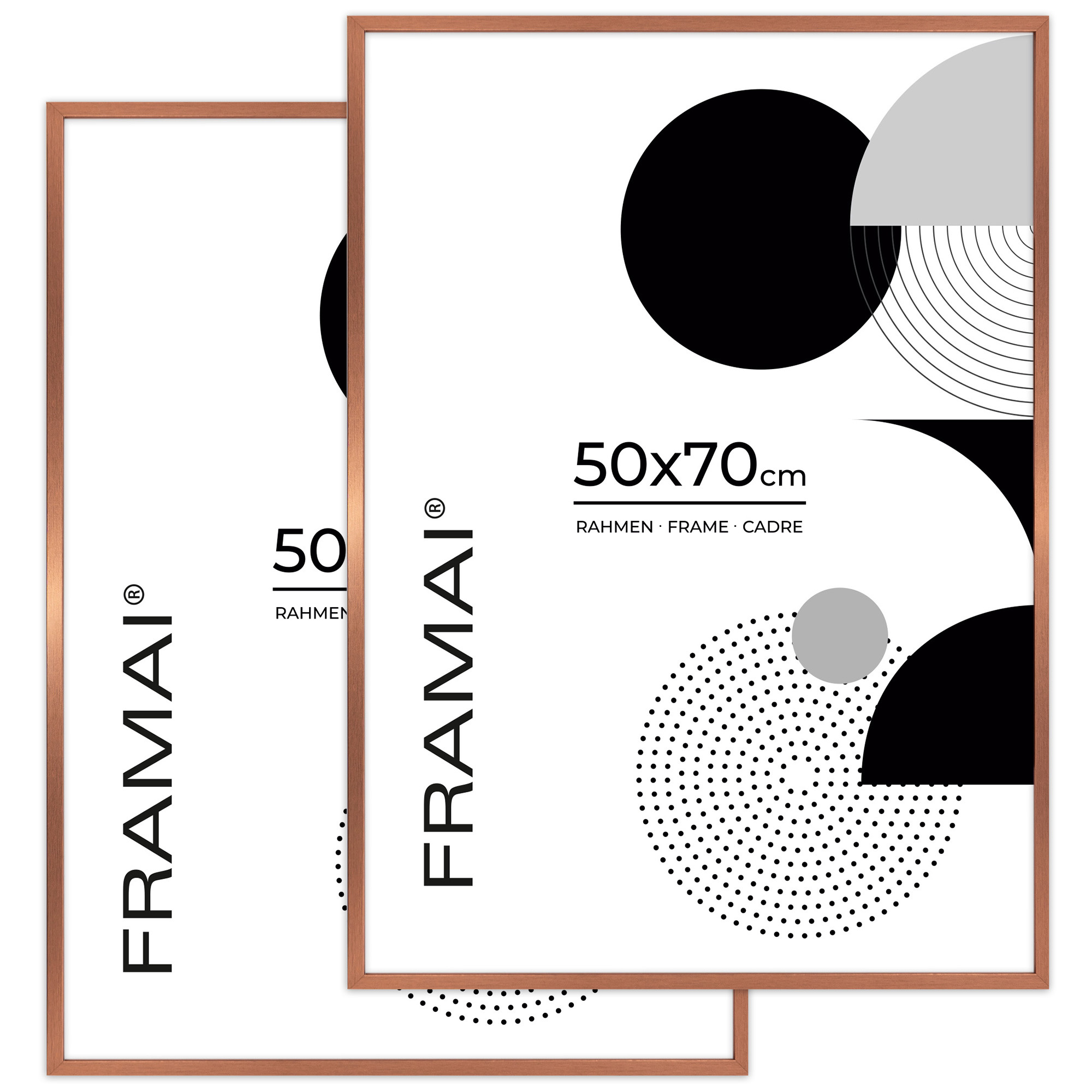 Dwie ramki na zdjęcia 50x70 cm w kolorze miedzianym. Nasze ramki z serii LUX to elegancja i nowoczesność. Ramka wykonana jest z ekologicznego MDF, z przodu posiada szkło organiczne (plexi), które chroni ją przed zabrudzeniami i kurzem, a z tyłu stabilności dodaje jej twarda płyta HDF. Ramka w nowoczesnym stylu z matowym wykończeniem, idealnie wpasuje się w każde wnętrze. Zestaw 2 ramek 50x70 cm idealnie nada się do oprawy twoich zdjęć, plakatów bądź grafik.