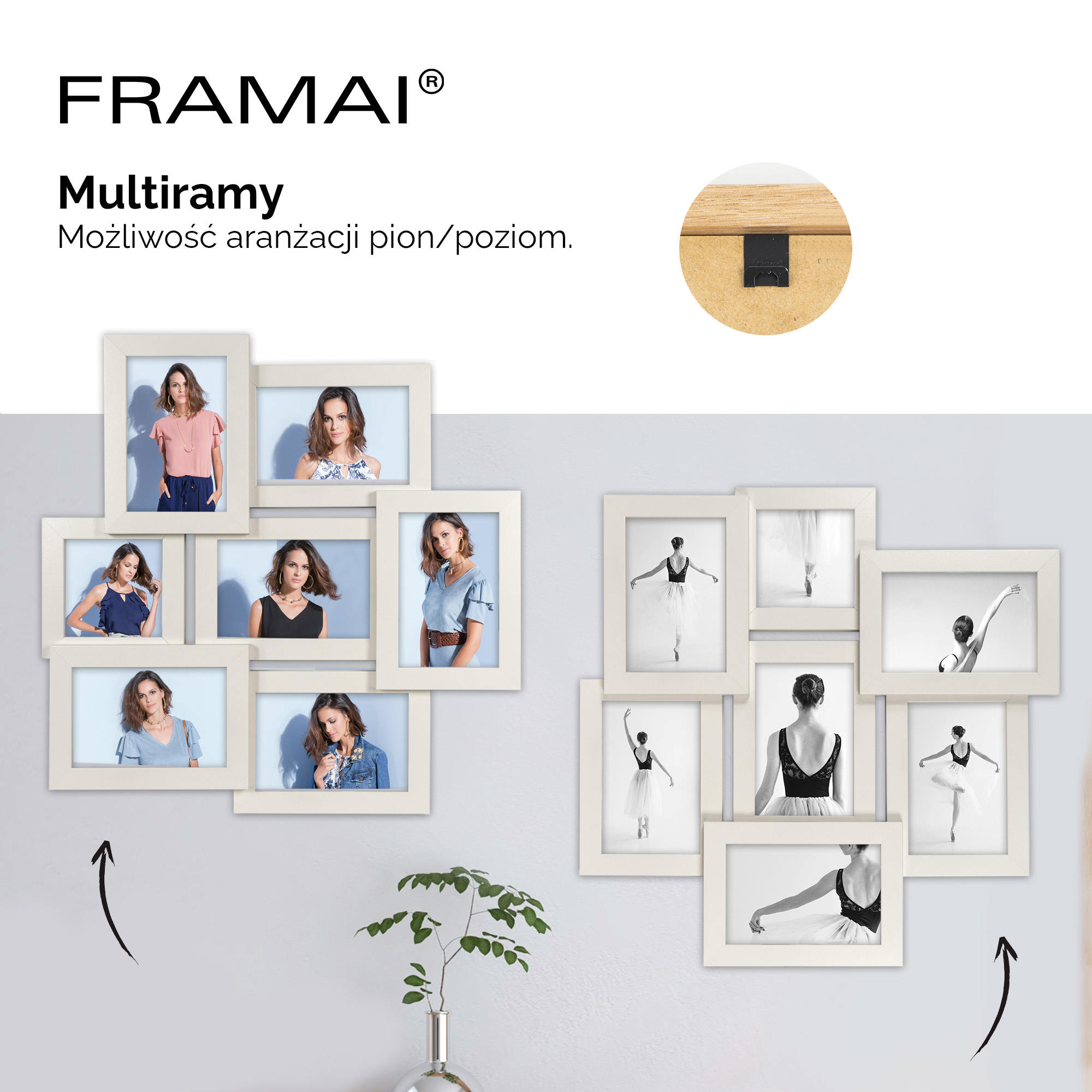 Ramki w multiramie mają estetycznie wykończone narożniki i są trwale skręcone stalowymi wkrętami. Dzięki elastycznym blaszkom, wymiana fotografii jest szybka i łatwa – to świetna zabawa dla całej rodziny. Praktyczna zawieszka pozwala na zawieszenie multiramy w pionie lub poziomie, dopasowując ją do każdej aranżacji wnętrza. Każda ramka jest indywidualnie pakowana w ochronne tekturowe opakowanie oraz folię, co gwarantuje jej bezpieczny transport i idealny stan przy odbiorze.