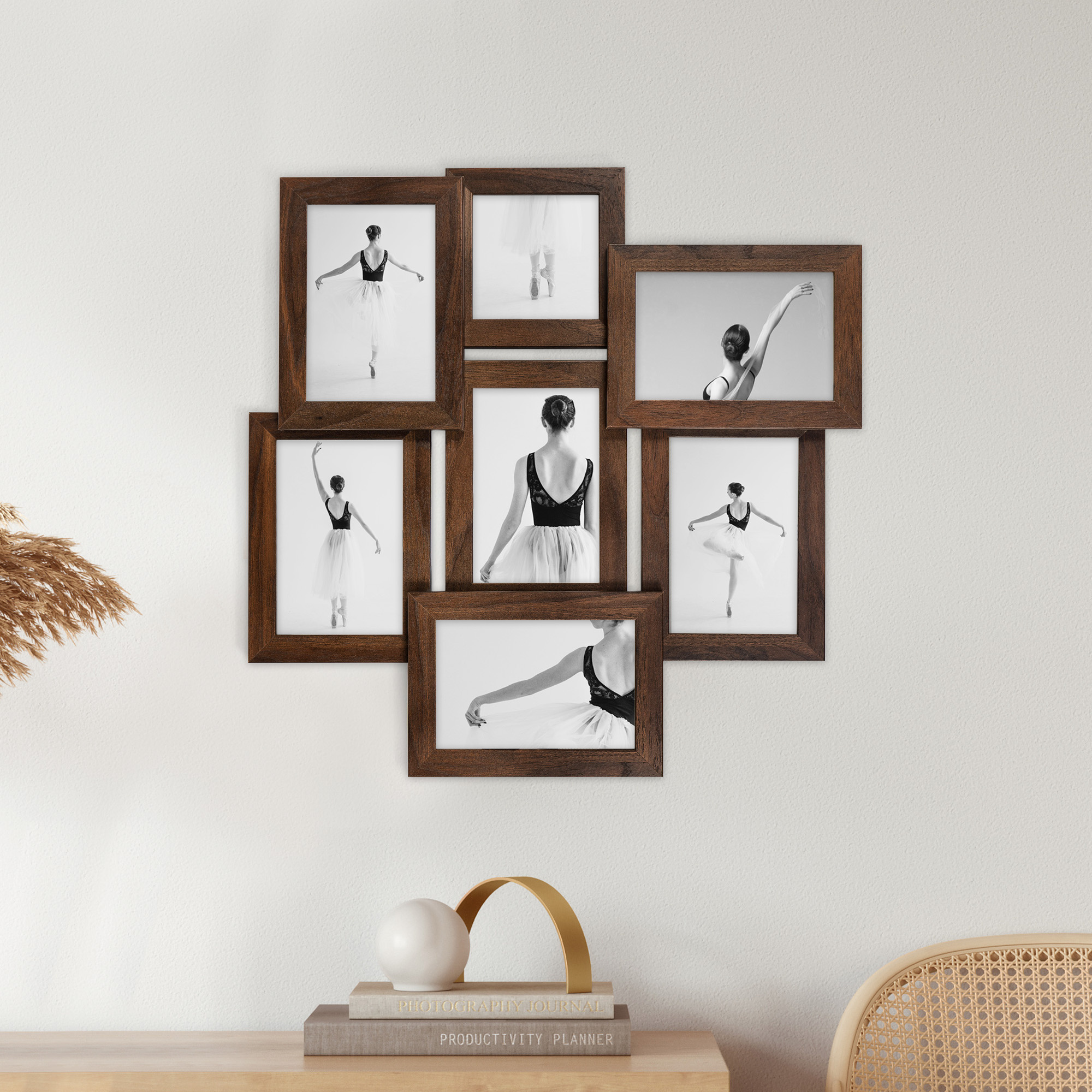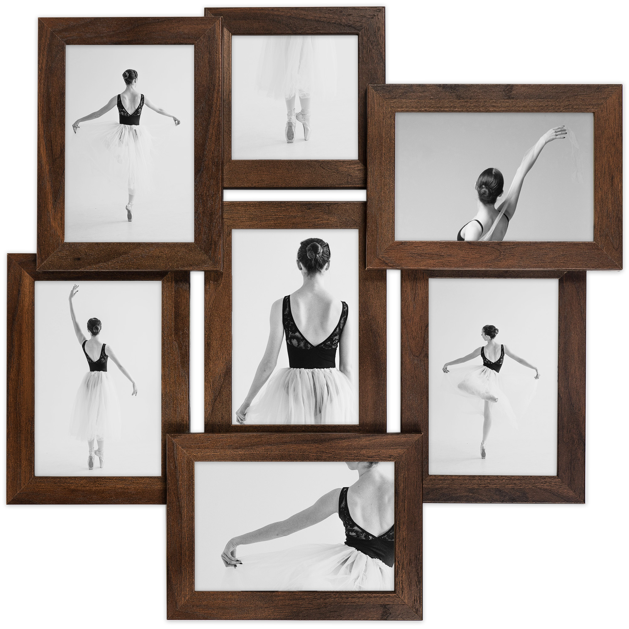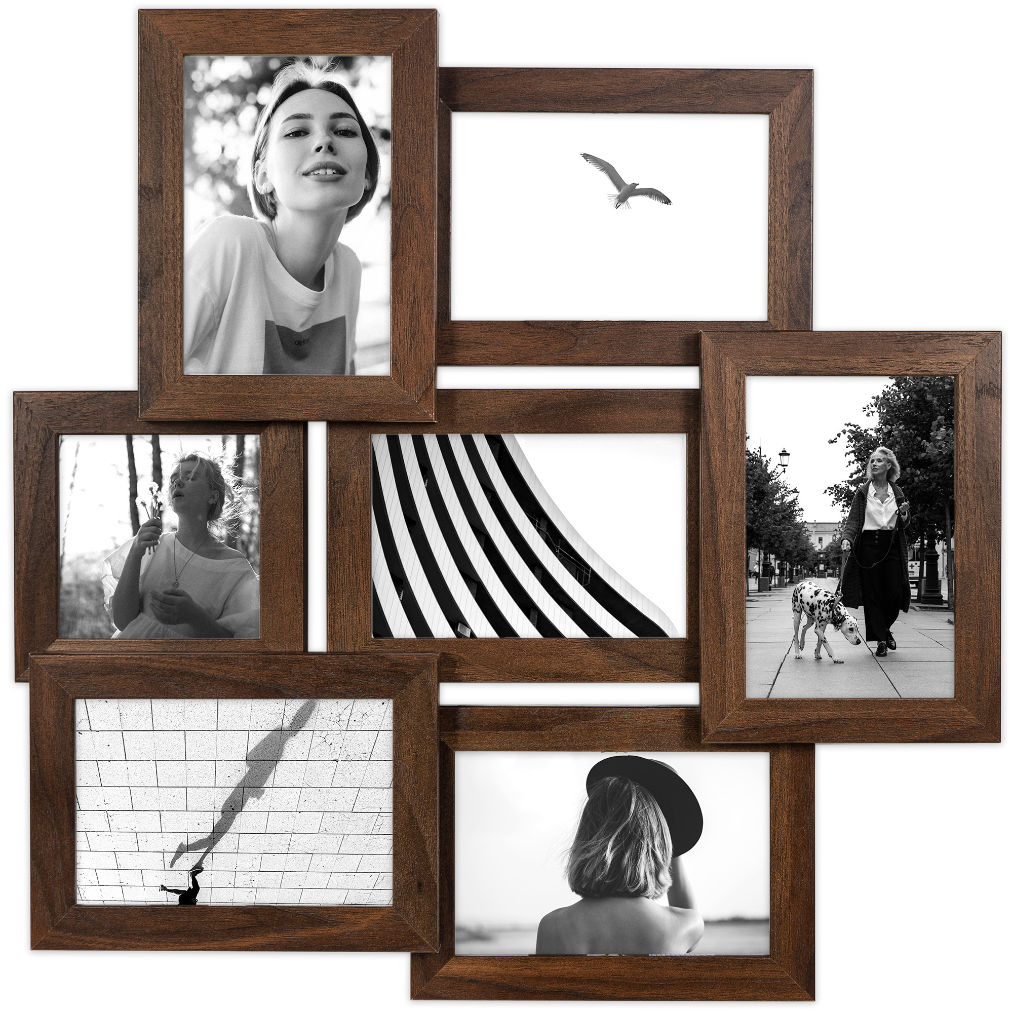 Multirama HEN 4 44x44 cm z ekologicznego MDF z nietłukącą się plexi – ramka na 7 zdjęć w kolorze brązowym