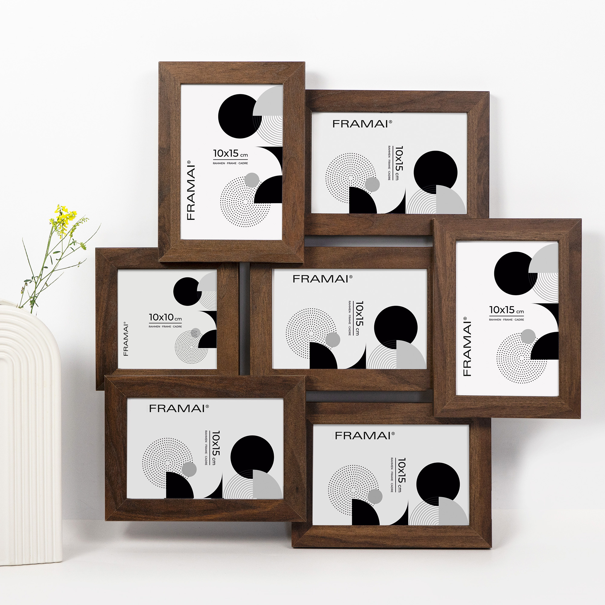 Multirama HEN 4 to elegancka oprawa na 7 zdjęć – sześć o wymiarach 10x15 cm i jedno o wymiarach 10x10 cm. Wykonana z MDF z prostym, naturalnym wykończeniem w klasycznym brązowym kolorze, stanowi idealną propozycję do stworzenia stylowej galerii rodzinnej lub wyeksponowania wyjątkowych wspomnień z wakacji. Każda multirama jest wykonana w 100% z ekologicznego MDF, wyposażona w bezbarwne plexi organiczne oraz twarde plecy z płyty HDF, co zapewnia trwałość i stabilność konstrukcji.
