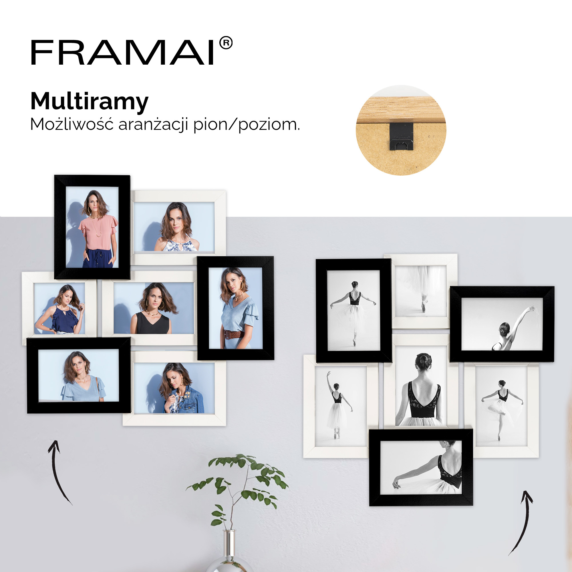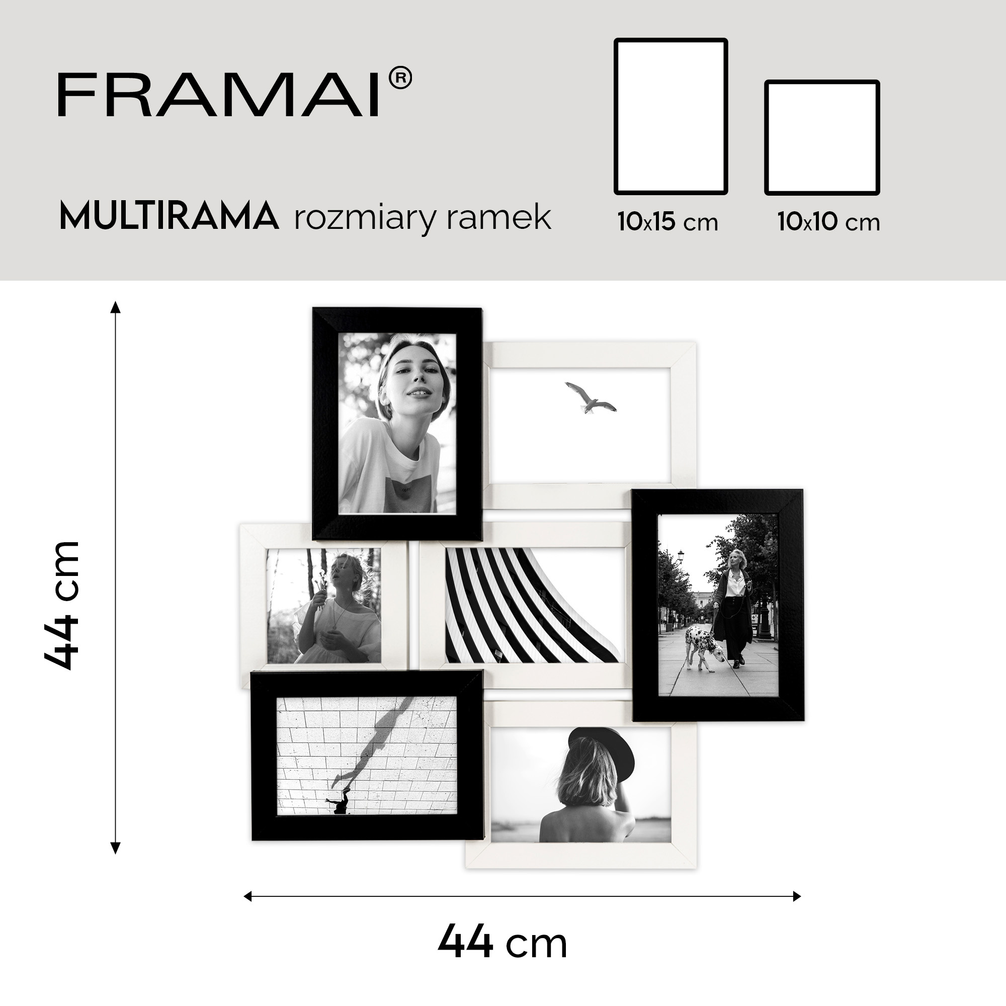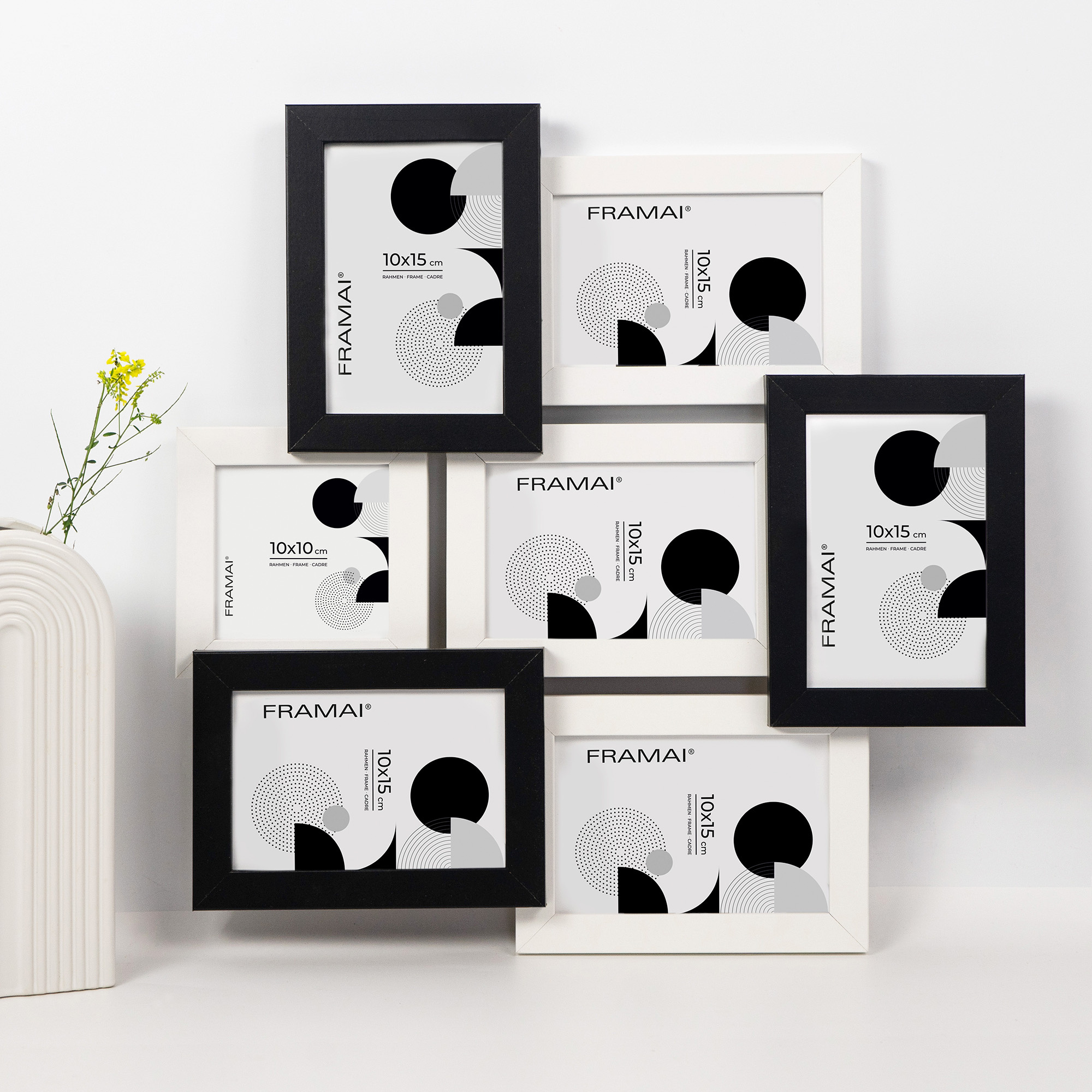 Multirama HEN 1-2 to elegancka oprawa na 7 zdjęć – sześć o wymiarach 10x15 cm i jedno o wymiarach 10x10 cm. Wykonana z MDF z prostym, matowym wykończeniem w eleganckim czarno-białym kolorze, stanowi idealną propozycję do stworzenia stylowej galerii rodzinnej lub wyeksponowania wyjątkowych wspomnień z wakacji. Każda multirama jest wykonana w 100% z ekologicznego MDF, wyposażona w bezbarwne plexi organiczne oraz twarde plecy z płyty HDF, co zapewnia trwałość i stabilność konstrukcji.