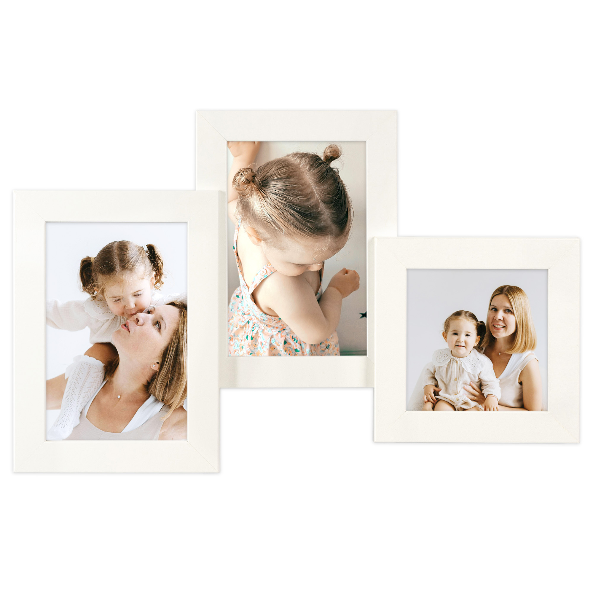 Biała Multirama HEN 1 24x37 cm z ekologicznego MDF z nietłukącą się plexi – ramka na 3 zdjęcia 10x15 cm, 10x10 cm.