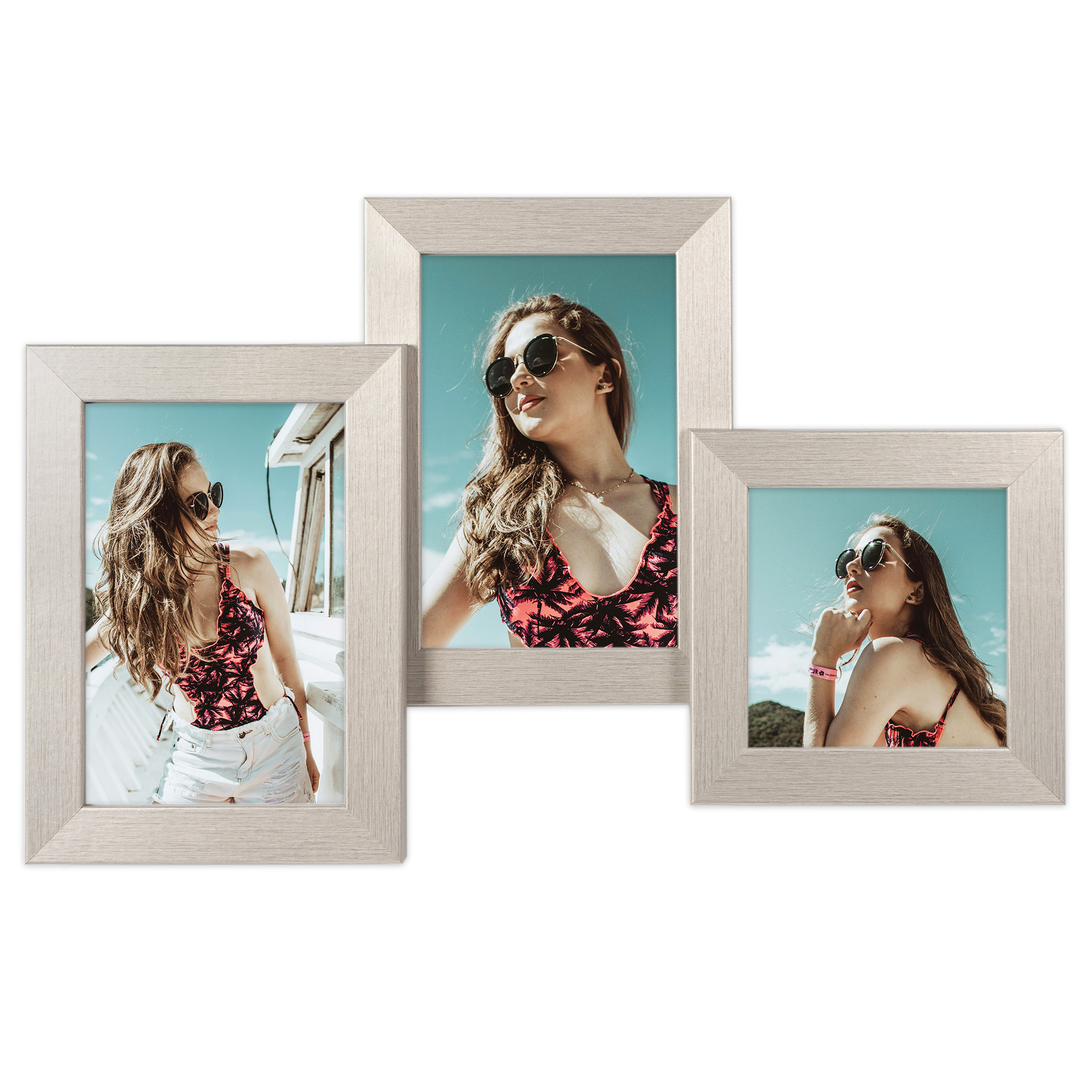 Srebrna Multirama HEN S 24x37 cm z ekologicznego MDF z nietłukącą się plexi – ramka na 3 zdjęcia 10x15 cm, 10x10 cm.