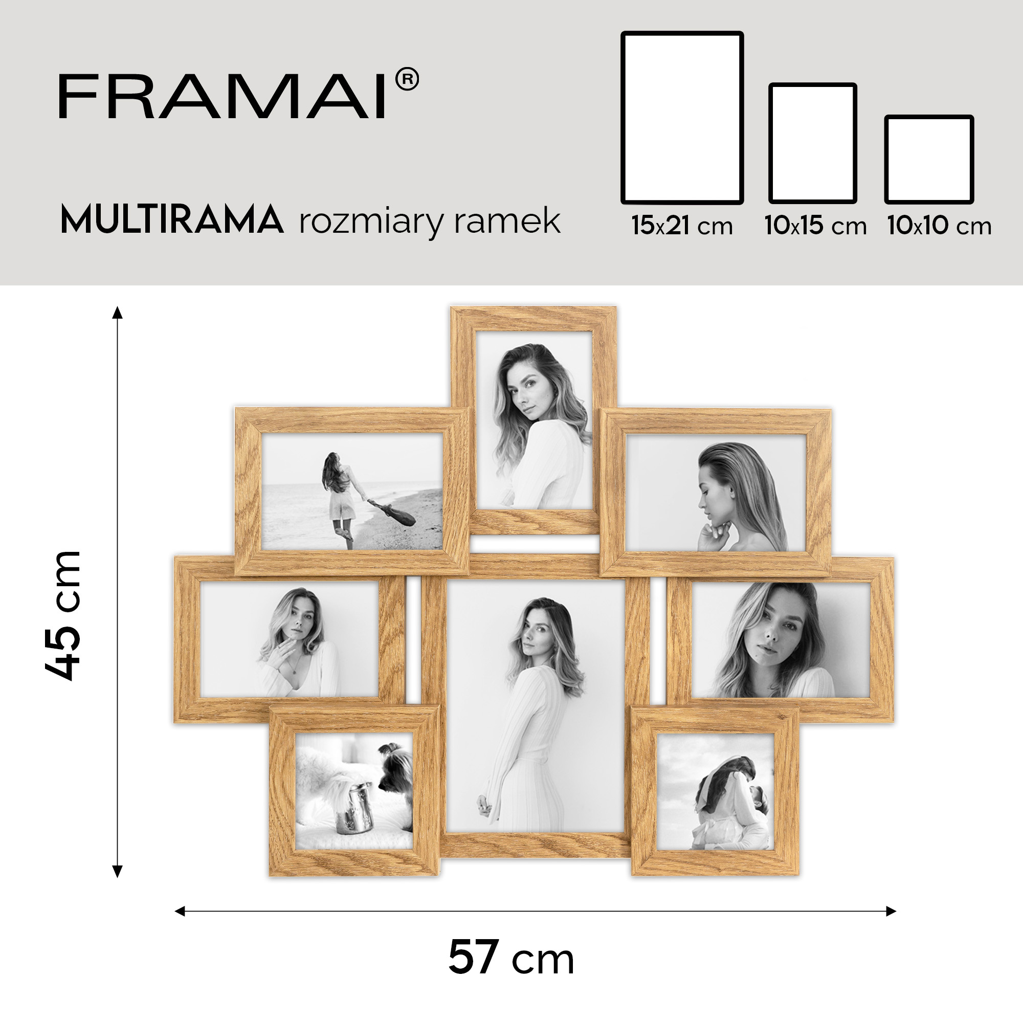 Multirama w dębowym kolorze MULTI HEN 01 na 8 zdjęć ramka na zdjęcia