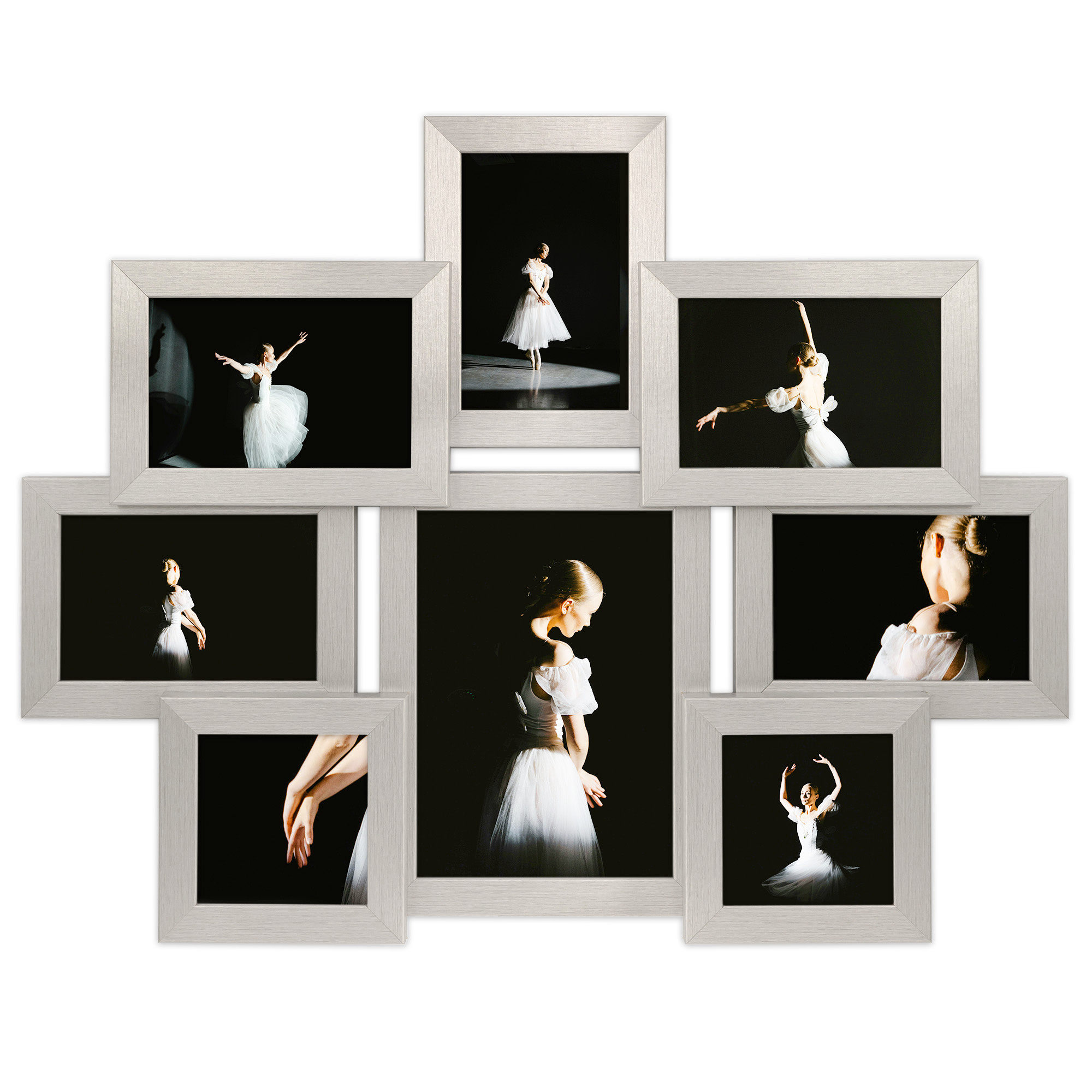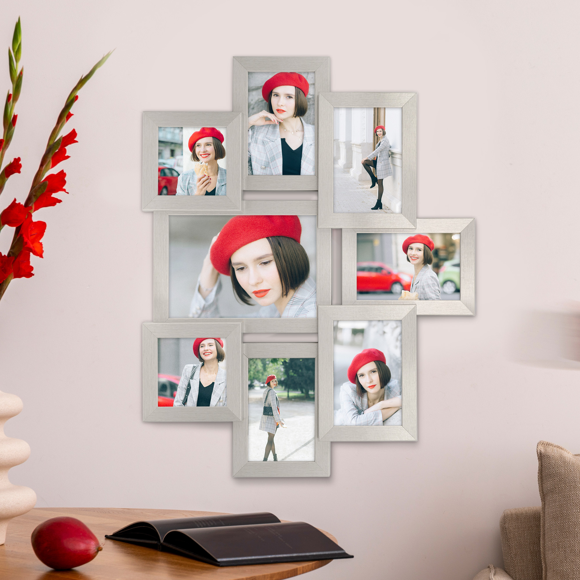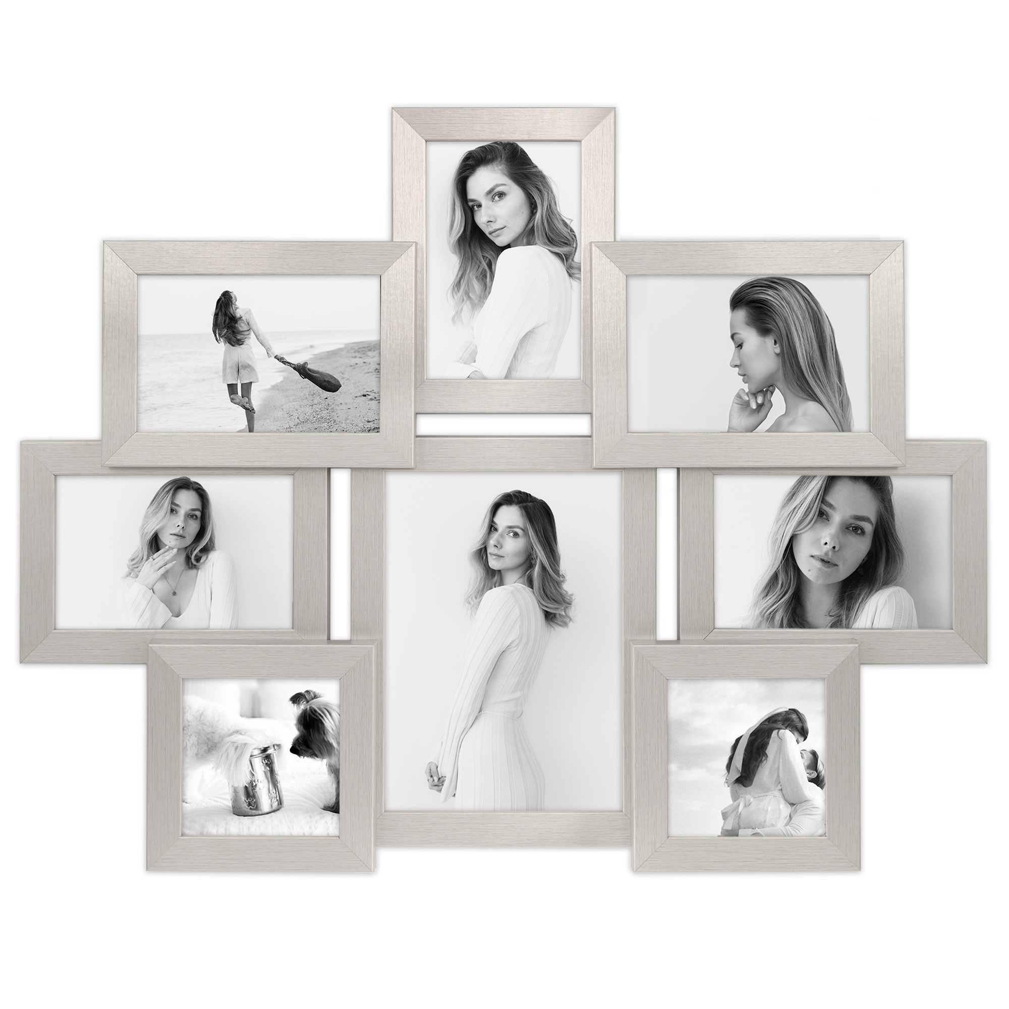 Multirama HEN S 57x45 cm z ekologicznego MDF z nietłukącą się plexi – ramka na 8 zdjęć w kolorze srebrnym
