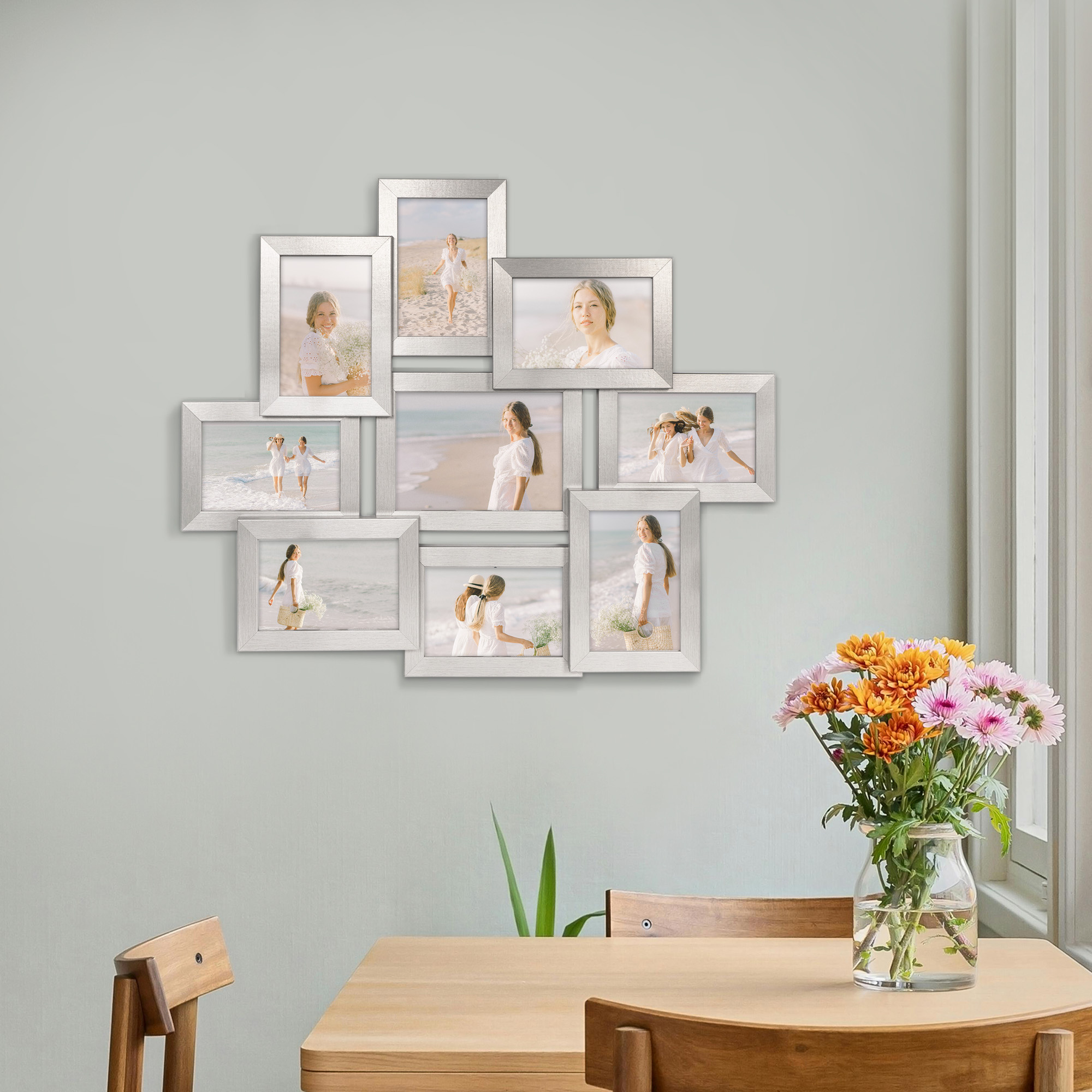 Multirama HEN S 61x51 cm z ekologicznego MDF z nietłukącą się plexi – ramka na 9 zdjęć w kolorze srebrnym