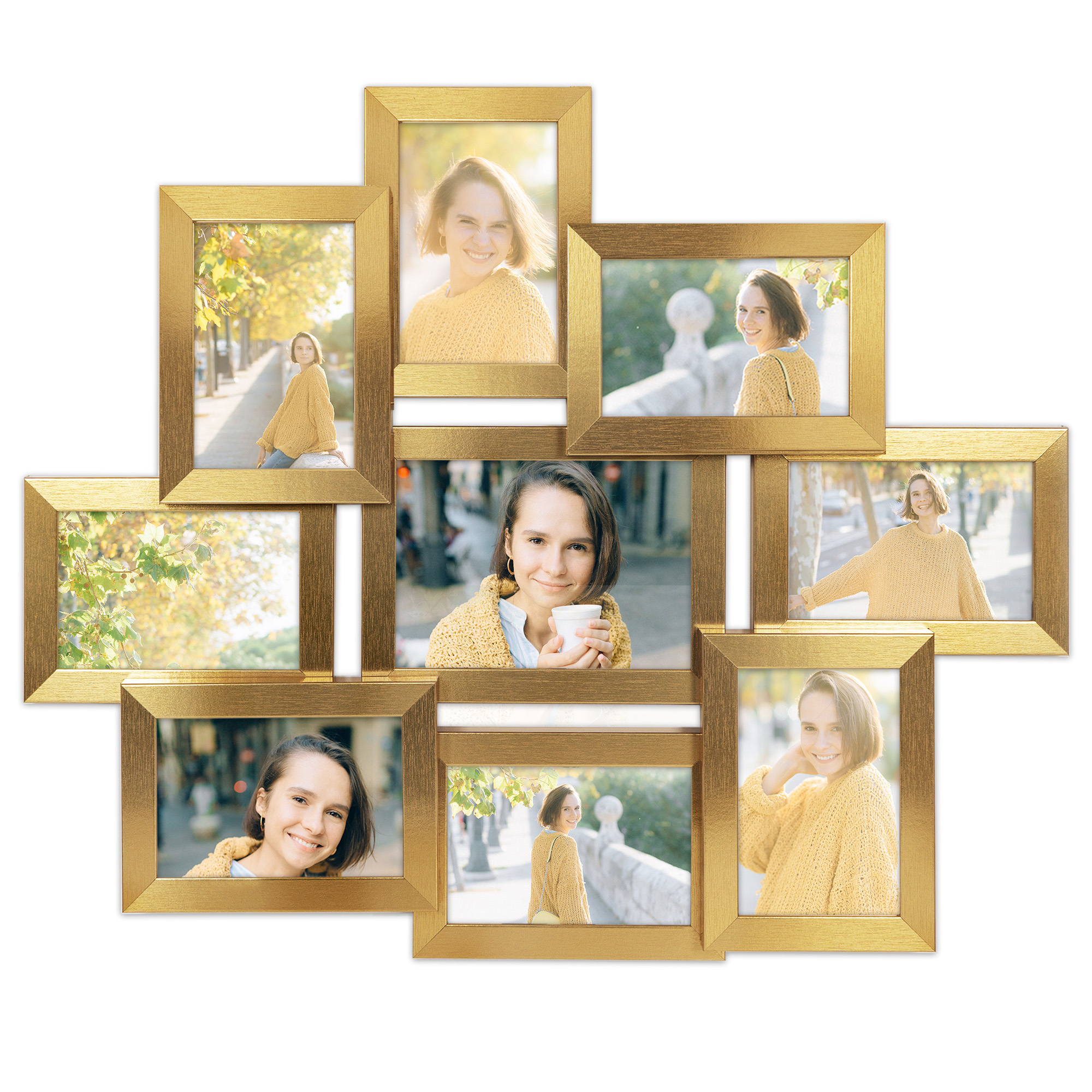 Multirama w złotym kolorze MULTI HEN Z na 9 zdjęć ramka na zdjęcia