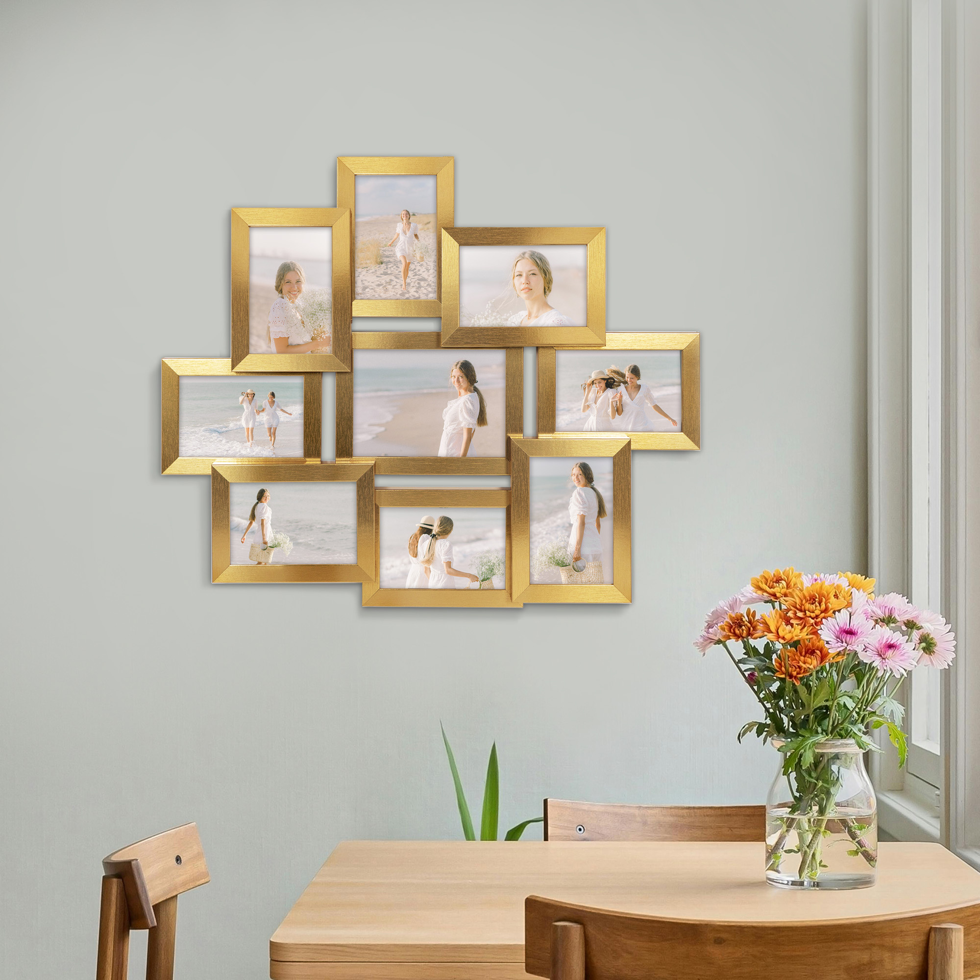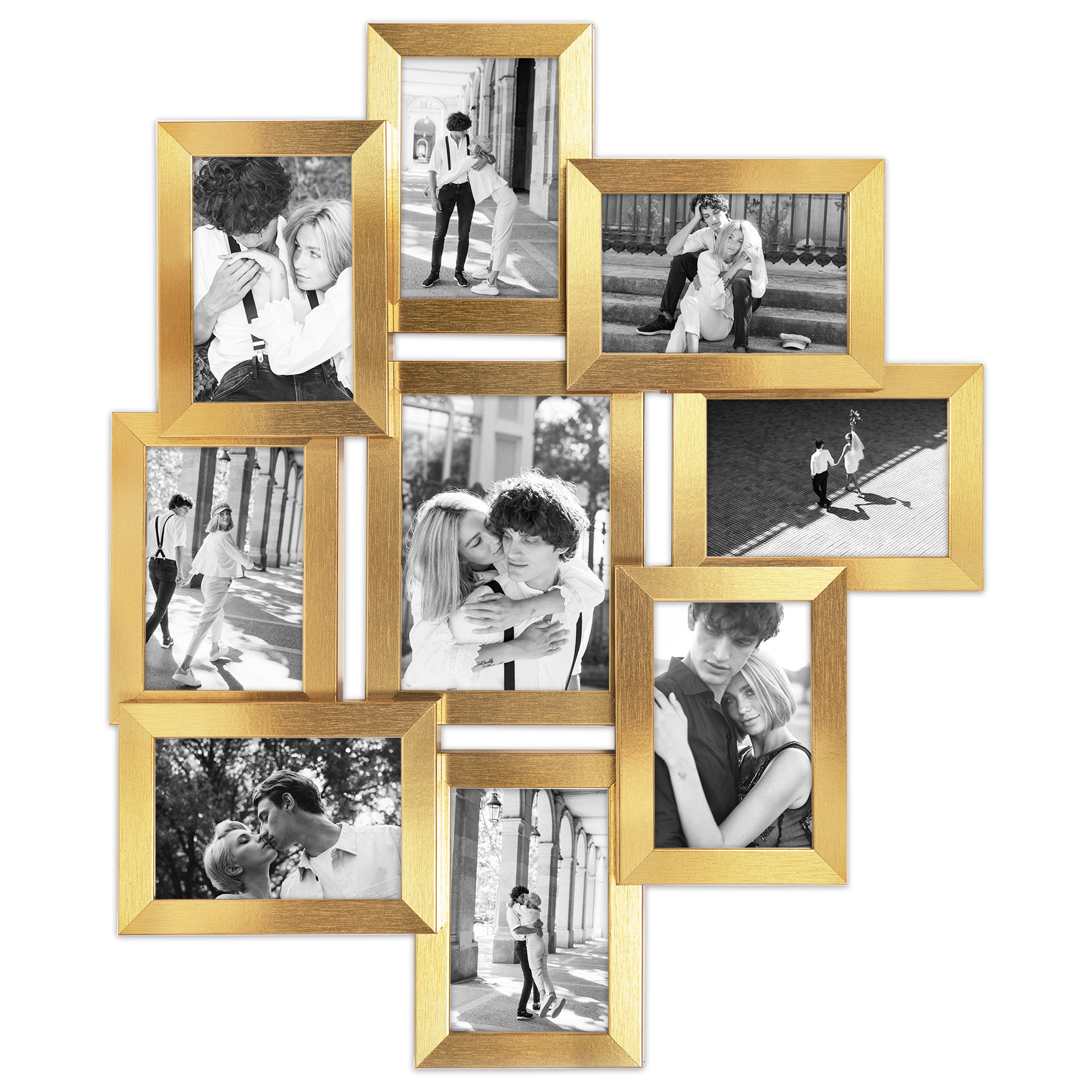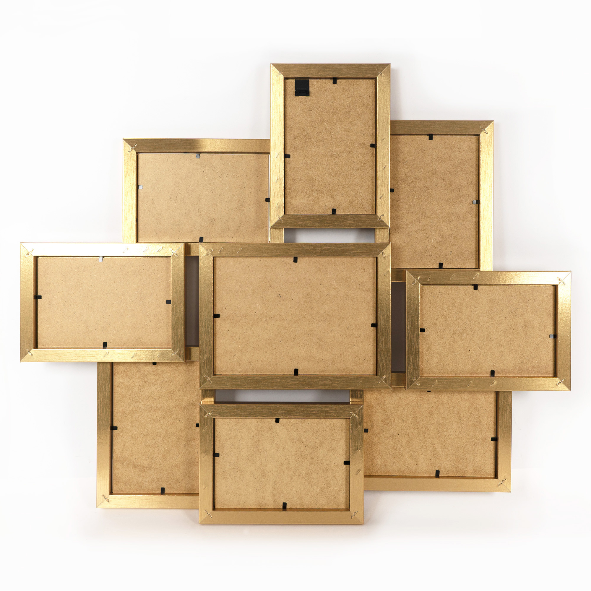 Multirama HEN Z 61x51 cm z ekologicznego MDF z nietłukącą się plexi – ramka na 9 zdjęć w kolorze złotym