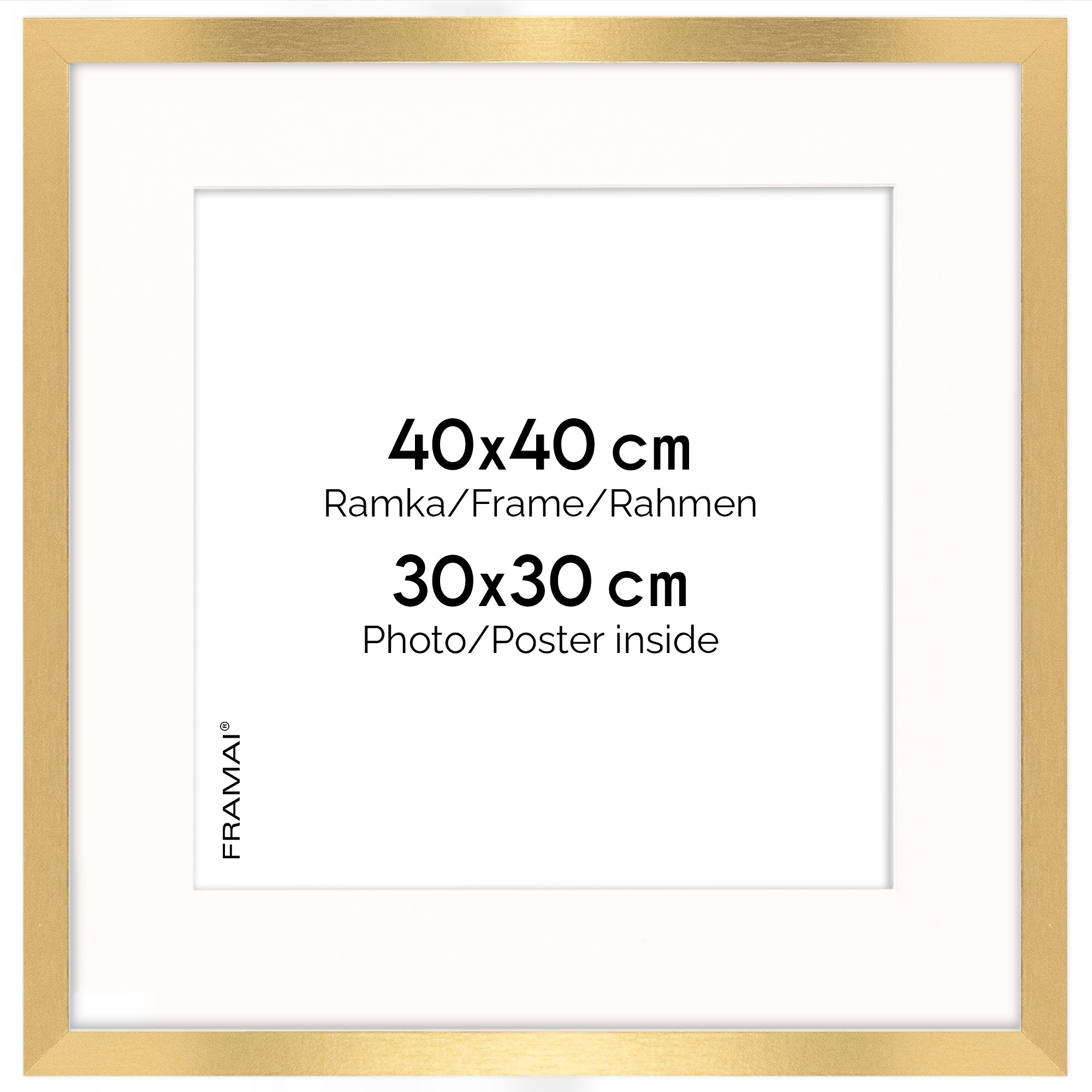Ramka 40×40 cm w złotym kolorze z passe-partout przeznaczonym na zdjęcia 30×30 cm
