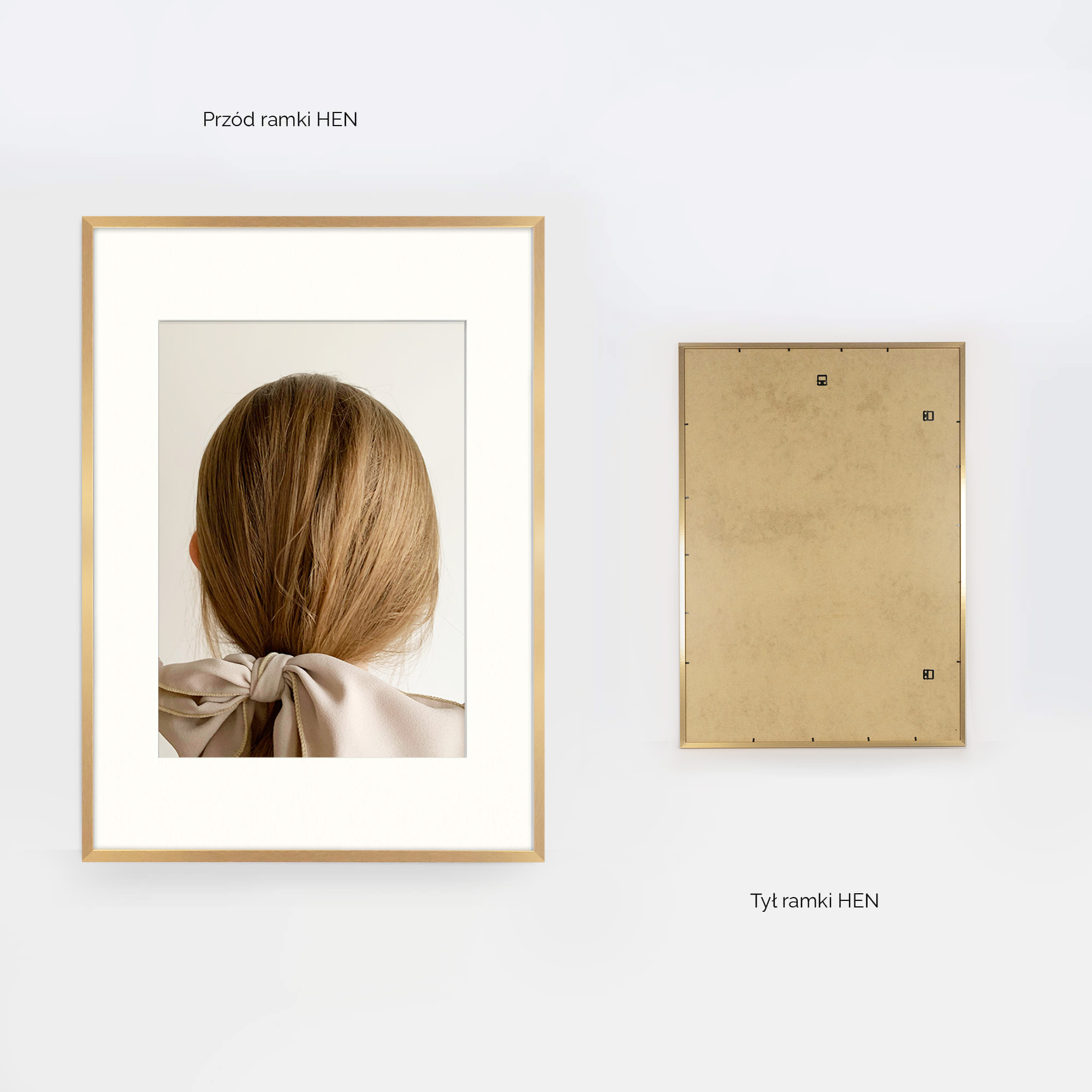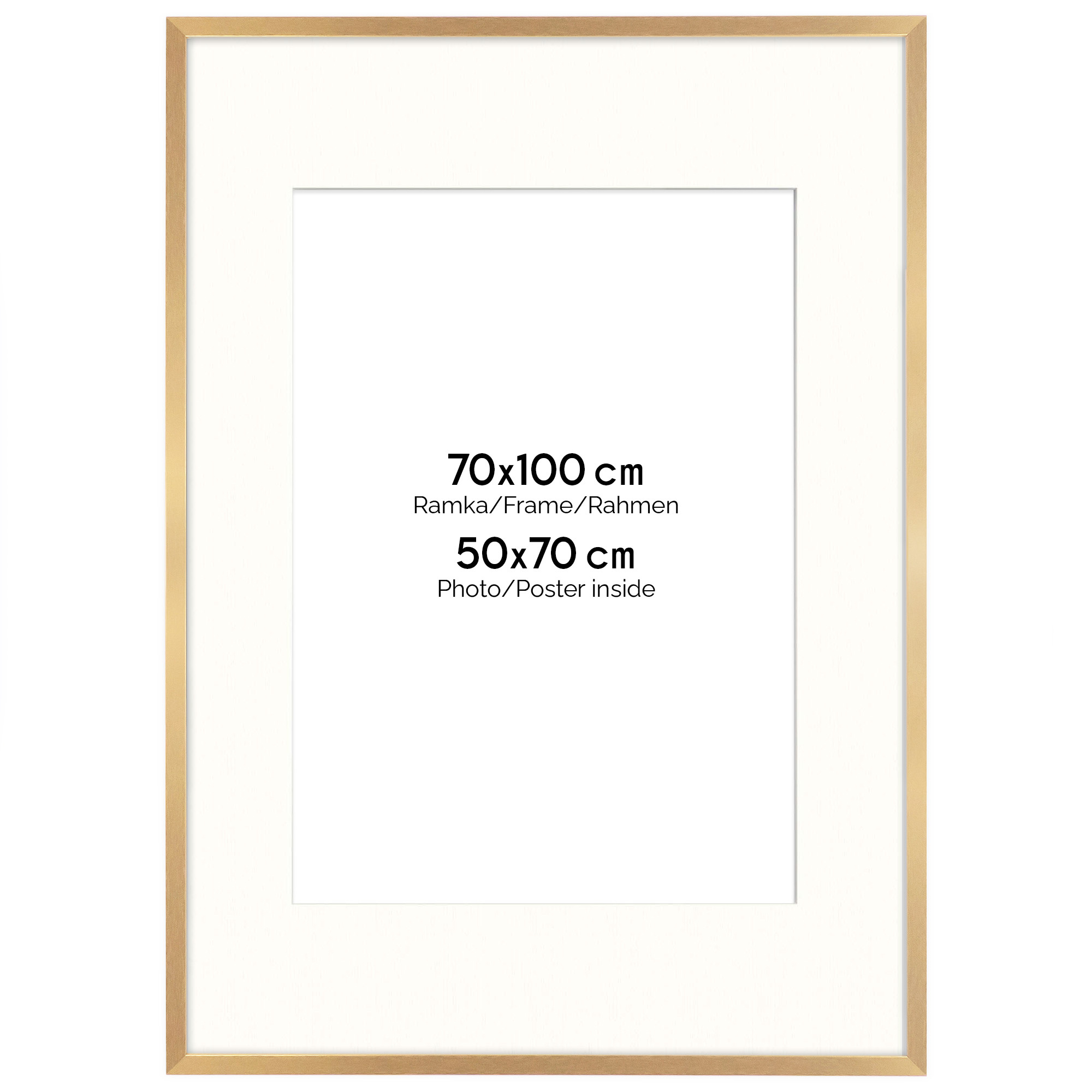 Ramka 70×100 cm w złotym kolorze z passe-partout przeznaczonym na zdjęcia 50×70 cm.