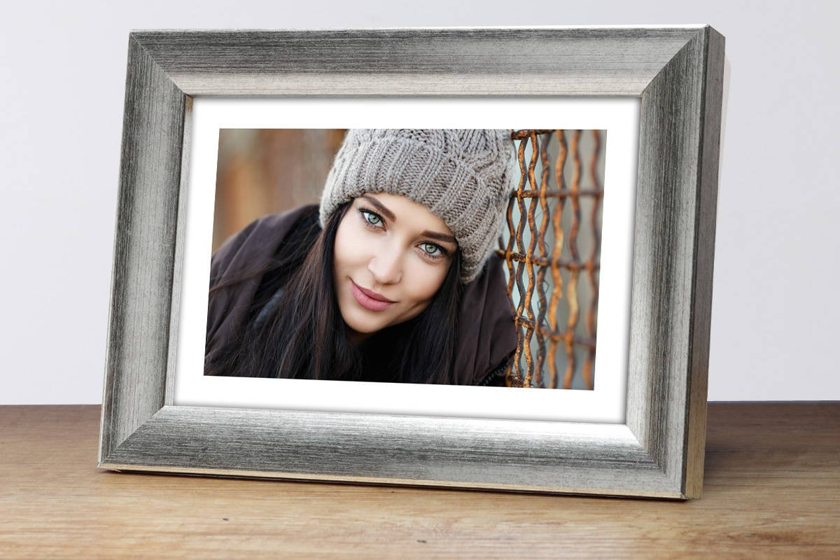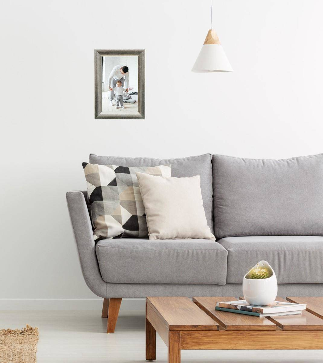 Nowoczesna fotoramka w srebrnym antycznym kolorze o przekroju profilu 20x16 mm wykonana w 100% z drewna. Przeznaczona jest do oprawy fotografii, plakatów i dyplomów. W zależności od formatu wyposażona jest w szkło mineralne lub bezbarwne szkło organiczne - wysokiej jakości plexi. Plecki wykonane są z twardej płyty HDF. Ramki na zdjęcia do rozmiaru 18x24 cm dodatkowo posiadają stopkę / nóżkę która pozwala eksponować oprawiony obraz na biurku lub regale. Ramka drewniana ISPANI dostępna jest w rozmiarach od 10x15 cm do 50x70 cm.
