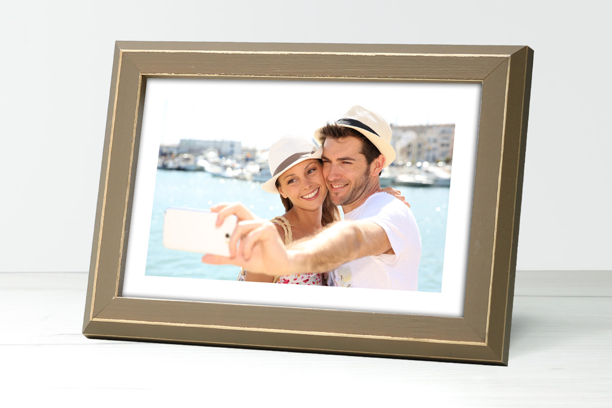 Nowoczesna fotoramka w kolorze kawy z przetarciami o przekroju profilu 15x15 mm wykonana w 100% z drewna. Przeznaczona jest do oprawy fotografii, plakatów i dyplomów. W zależności od formatu wyposażona jest w szkło mineralne lub bezbarwne szkło organiczne - wysokiej jakości plexi. Plecki wykonane są z twardej płyty HDF. Ramki na zdjęcia do rozmiaru 18x24 cm dodatkowo posiadają stopkę / nóżkę która pozwala eksponować oprawiony obraz na biurku lub regale. Ramka drewniana MARINA dostępna jest w rozmiarach od 10x15 cm do 40x50 cm.