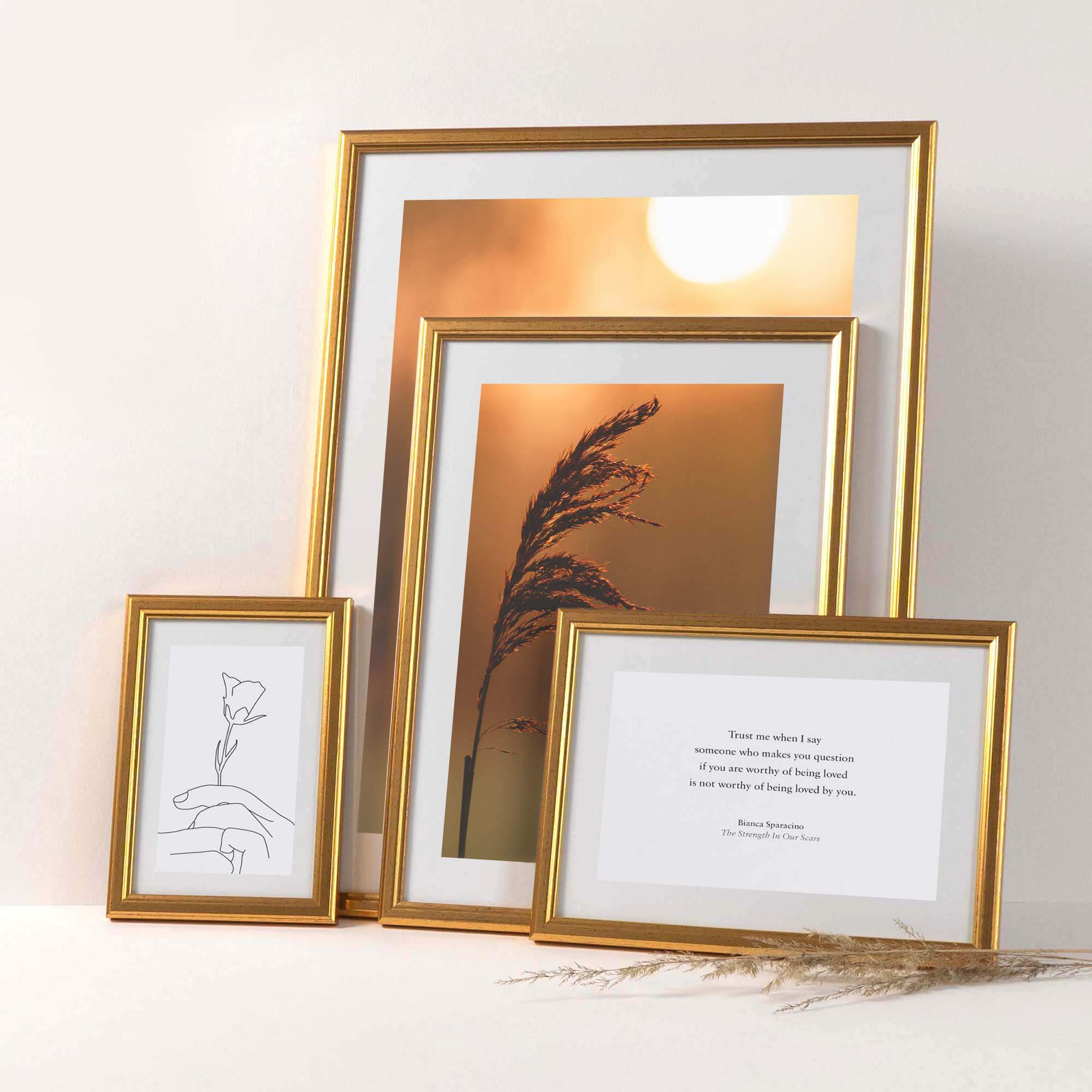 Klasyczna fotoramka w złotym kolorze o przekroju profilu 13x11 mm wykonana w 100% z drewna. Przeznaczona jest do oprawy fotografii, plakatów i dyplomów. W zależności od formatu wyposażona jest w szkło mineralne lub bezbarwne szkło organiczne - wysokiej jakości plexi. Plecki wykonane są z twardej płyty HDF. Ramki na zdjęcia do rozmiaru 18x24 cm dodatkowo posiadają stopkę / nóżkę - oprócz kwadratowych, która pozwala eksponować oprawiony obraz na biurku lub regale. Ramka drewniana PRESTO dostępna jest w rozmiarach od 10x15 cm do 40x50 cm.