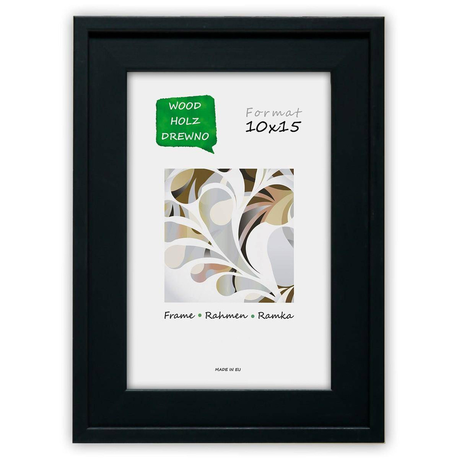 Nowoczesna fotoramka w czarnym kolorze o przekroju profilu 25x16 mm wykonana w 100% z drewna. Przeznaczona jest do oprawy fotografii, plakatów i dyplomów. W zależności od formatu wyposażona jest w szkło mineralne lub bezbarwne szkło organiczne - wysokiej jakości plexi. Plecki wykonane są z twardej płyty HDF. Ramki na zdjęcia do rozmiaru 18x24 cm dodatkowo posiadają stopkę / nóżkę która pozwala eksponować oprawiony obraz na biurku lub regale. Ramka drewniana RIVOLI dostępna jest w rozmiarach od 10x15 cm do 50x70 cm.