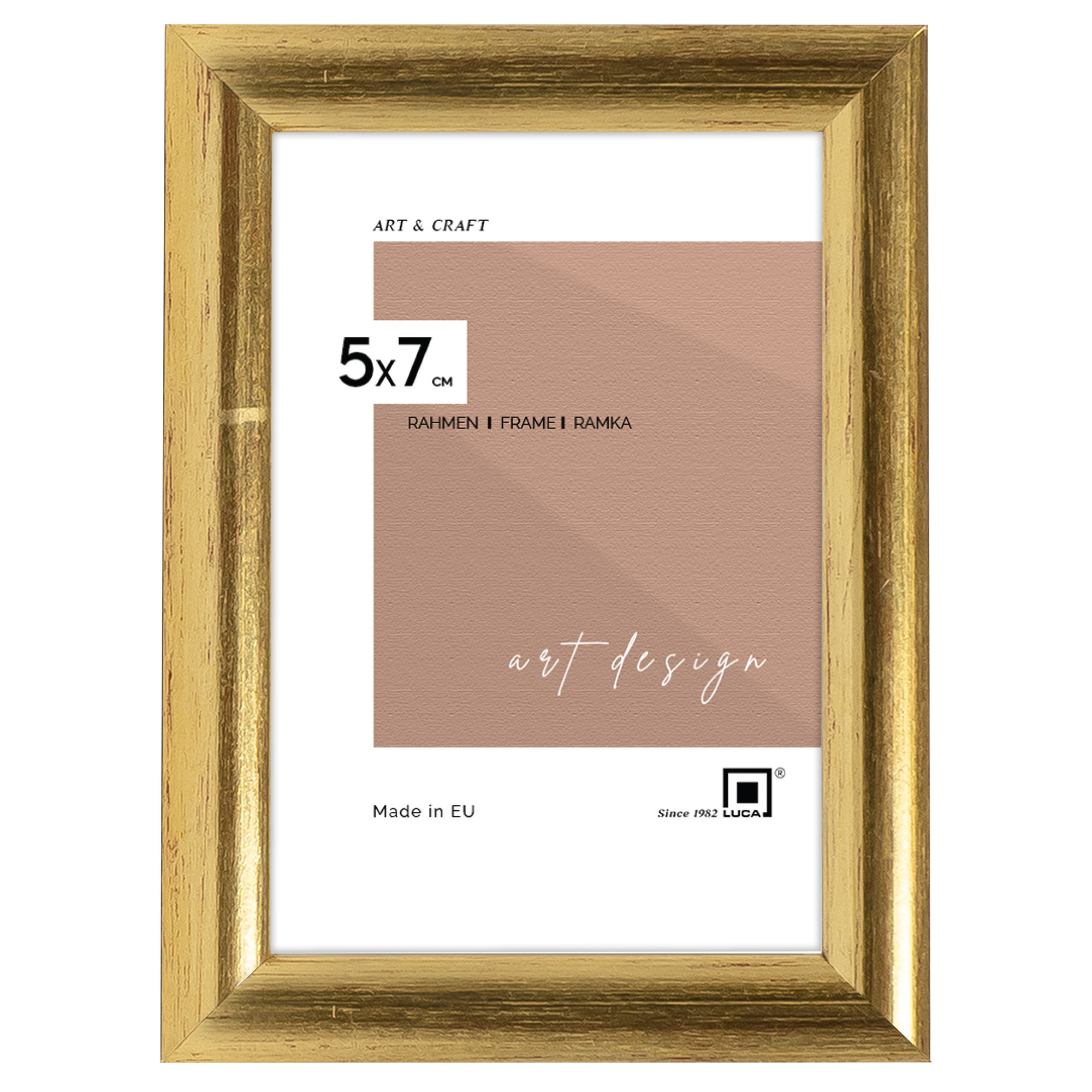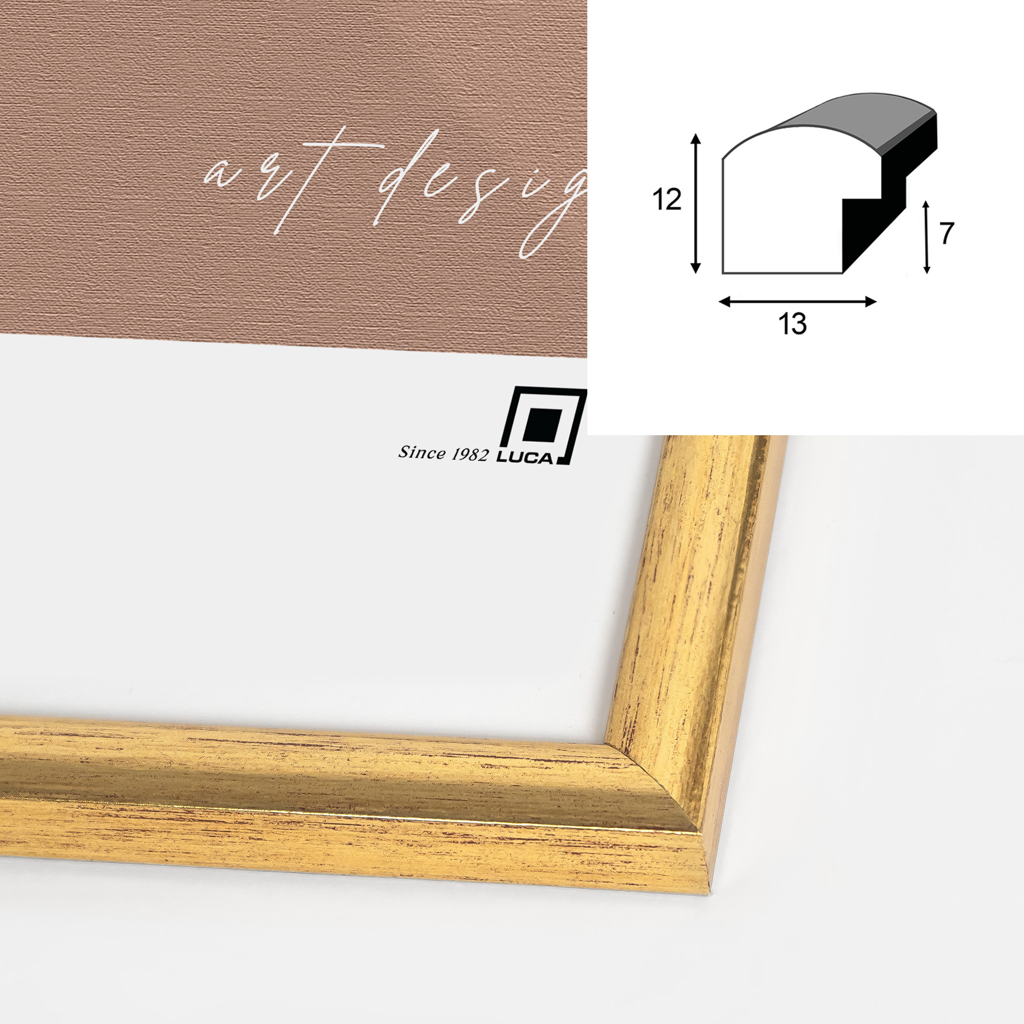 Nowoczesna fotoramka w złotym kolorze o przekroju profilu 13x12 mm wykonana w 100% z drewna. Przeznaczona jest do oprawy fotografii, plakatów i dyplomów. W zależności od formatu wyposażona jest w szkło mineralne lub bezbarwne szkło organiczne - wysokiej jakości plexi. Plecki wykonane są z twardej płyty HDF. Ramki na zdjęcia do rozmiaru 18x24 cm dodatkowo posiadają stopkę / nóżkę która pozwala eksponować oprawiony obraz na biurku lub regale. Ramka drewniana TITI dostępna jest w rozmiarach od 10x15 cm do 40x50 cm.