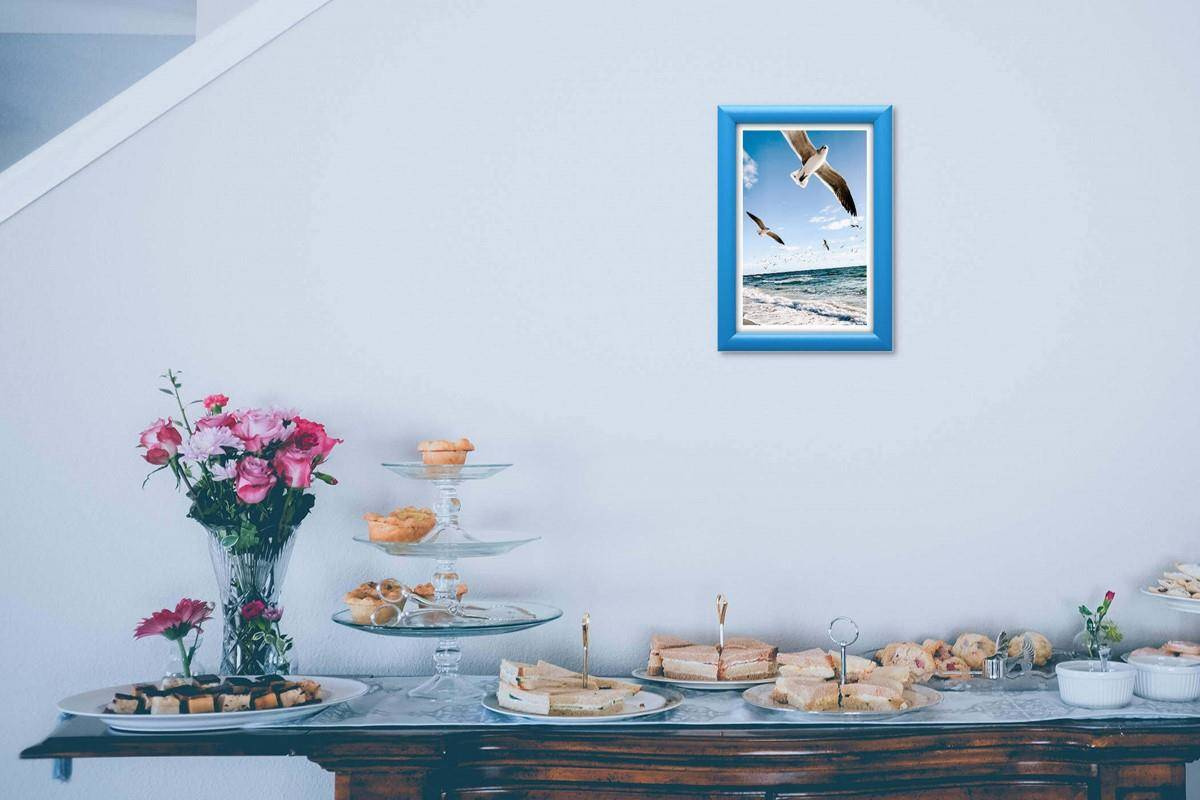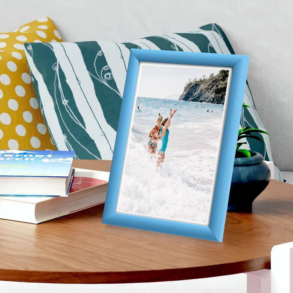 Nowoczesna fotoramka w niebieskim kolorze o przekroju profilu 13x12 mm wykonana w 100% z drewna. Przeznaczona jest do oprawy fotografii, plakatów i dyplomów. W zależności od formatu wyposażona jest w szkło mineralne lub bezbarwne szkło organiczne - wysokiej jakości plexi. Plecki wykonane są z twardej płyty HDF. Ramki na zdjęcia do rozmiaru 18x24 cm dodatkowo posiadają stopkę / nóżkę która pozwala eksponować oprawiony obraz na biurku lub regale. Ramka drewniana TITI dostępna jest w rozmiarach od 10x15 cm do 40x50 cm.