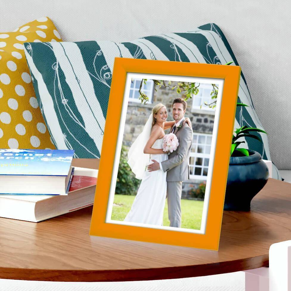 Nowoczesna fotoramka w żółtym kolorze o przekroju profilu 13x12 mm wykonana w 100% z drewna. Przeznaczona jest do oprawy fotografii, plakatów i dyplomów. W zależności od formatu wyposażona jest w szkło mineralne lub bezbarwne szkło organiczne - wysokiej jakości plexi. Plecki wykonane są z twardej płyty HDF. Ramki na zdjęcia do rozmiaru 18x24 cm dodatkowo posiadają stopkę / nóżkę która pozwala eksponować oprawiony obraz na biurku lub regale. Ramka drewniana TITI dostępna jest w rozmiarach od 10x15 cm do 40x50 cm.