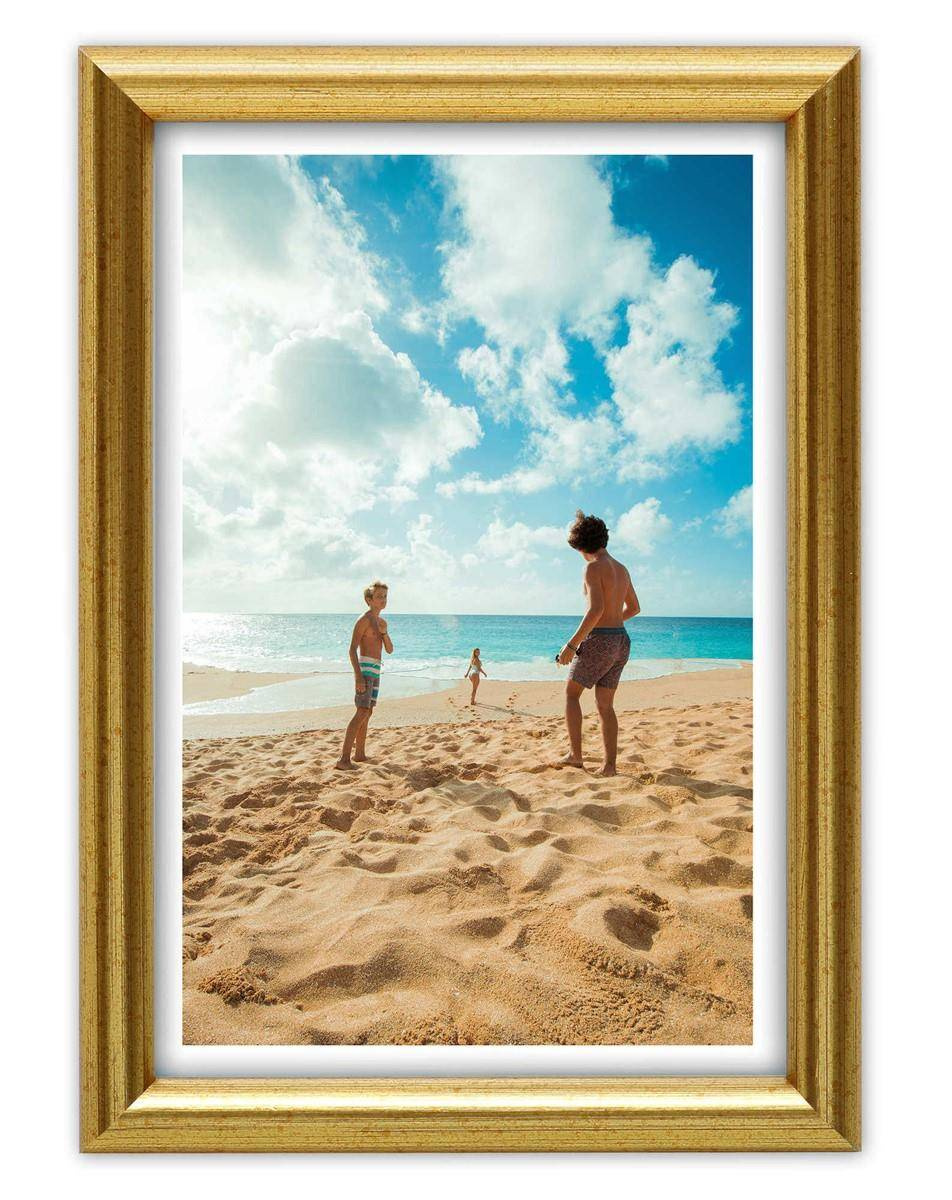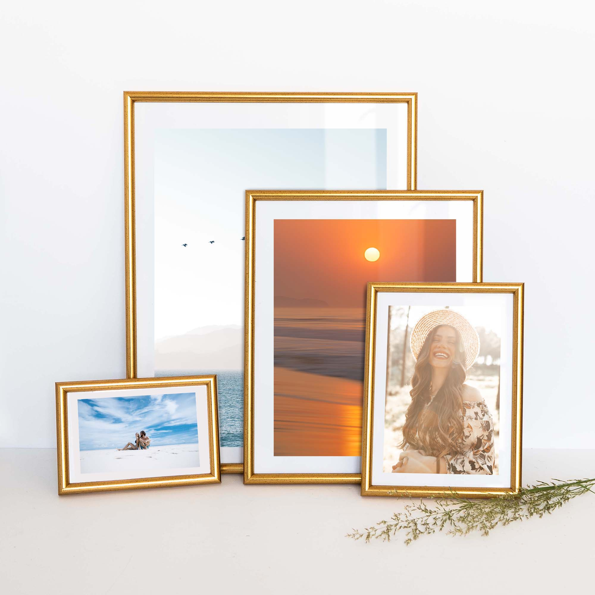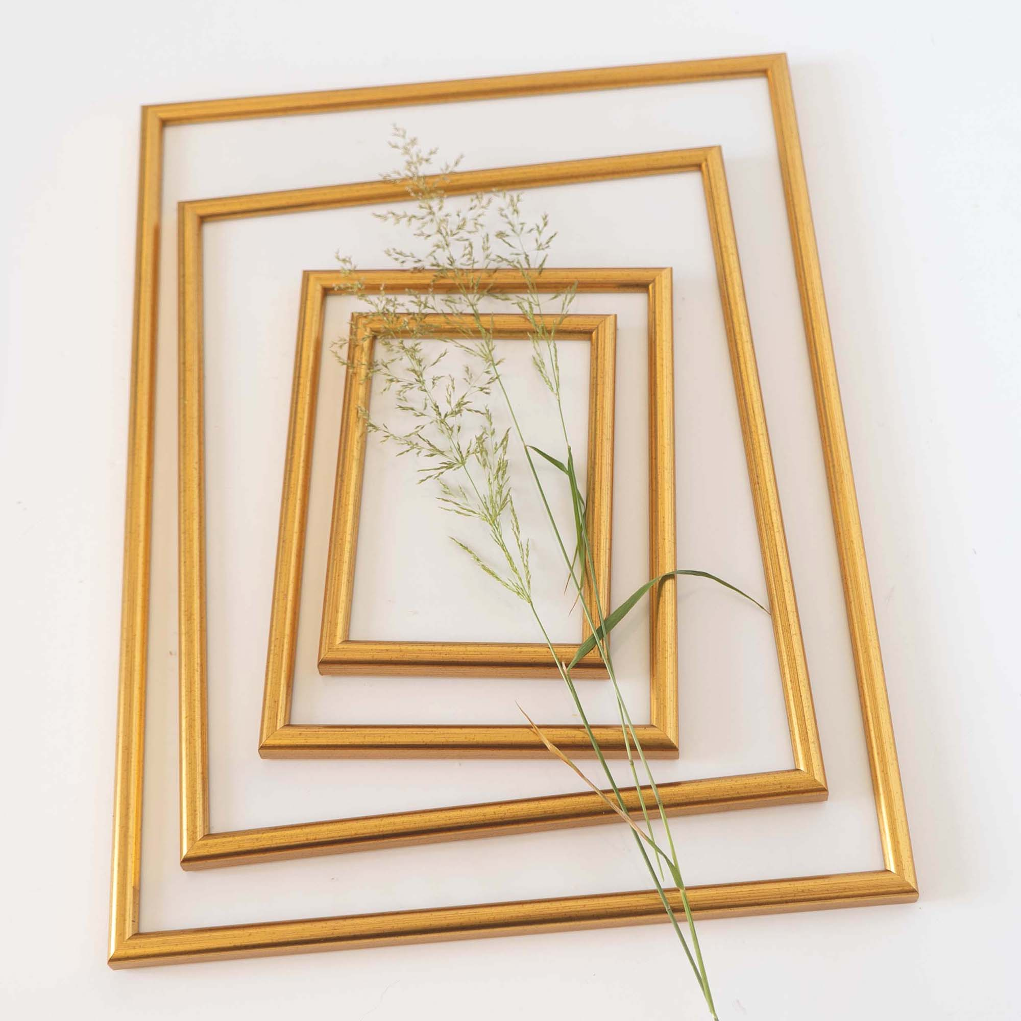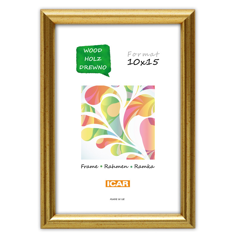 Nowoczesna fotoramka w złotym kolorze o przekroju profilu 12x13 mm wykonana w 100% z drewna. Przeznaczona jest do oprawy fotografii, plakatów i dyplomów. W zależności od formatu wyposażona jest w szkło mineralne lub bezbarwne szkło organiczne - wysokiej jakości plexi. Plecki wykonane są z twardej płyty HDF. Ramki na zdjęcia do rozmiaru 18x24 cm dodatkowo posiadają stopkę / nóżkę - oprócz kwadrawowych, która pozwala eksponować oprawiony obraz na biurku lub regale. Ramka drewniana TORI dostępna jest w rozmiarach od 10x10 cm do 40x50 cm.