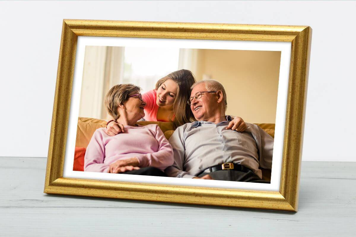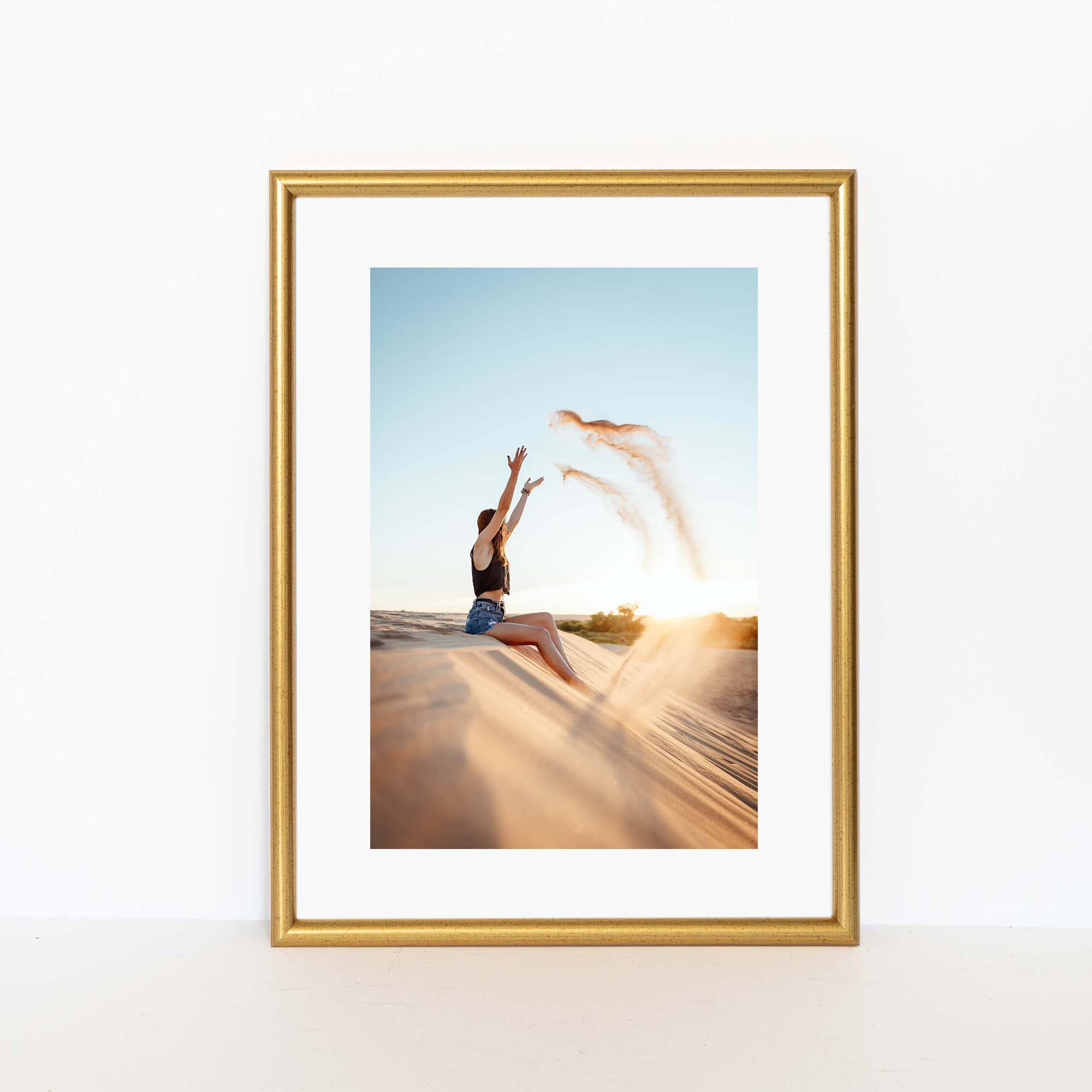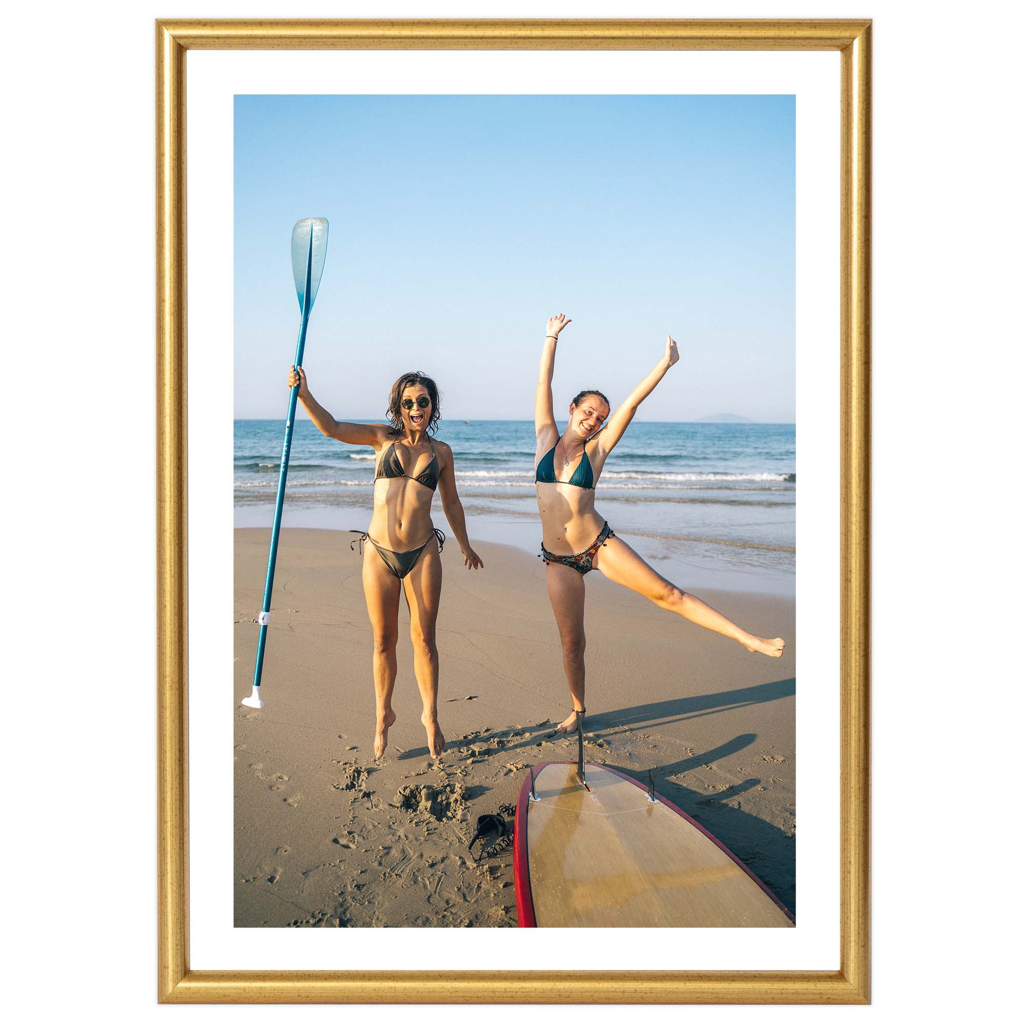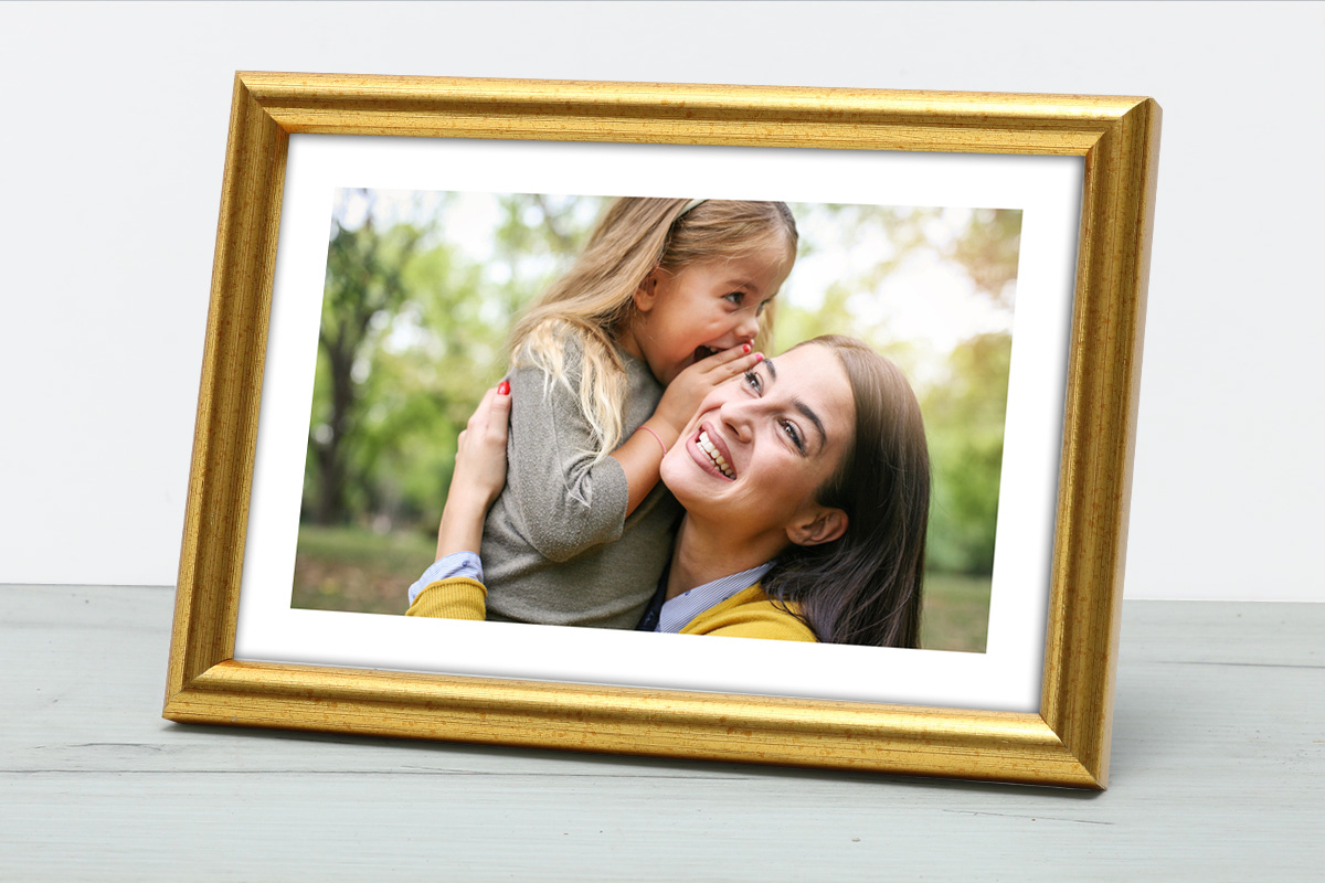 Nowoczesna fotoramka w złotym kolorze o przekroju profilu 12x13 mm wykonana w 100% z drewna. Przeznaczona jest do oprawy fotografii, plakatów i dyplomów. W zależności od formatu wyposażona jest w szkło mineralne lub bezbarwne szkło organiczne - wysokiej jakości plexi. Plecki wykonane są z twardej płyty HDF. Ramki na zdjęcia do rozmiaru 18x24 cm dodatkowo posiadają stopkę / nóżkę - oprócz kwadrawowych, która pozwala eksponować oprawiony obraz na biurku lub regale. Ramka drewniana TORI dostępna jest w rozmiarach od 10x10 cm do 40x50 cm.