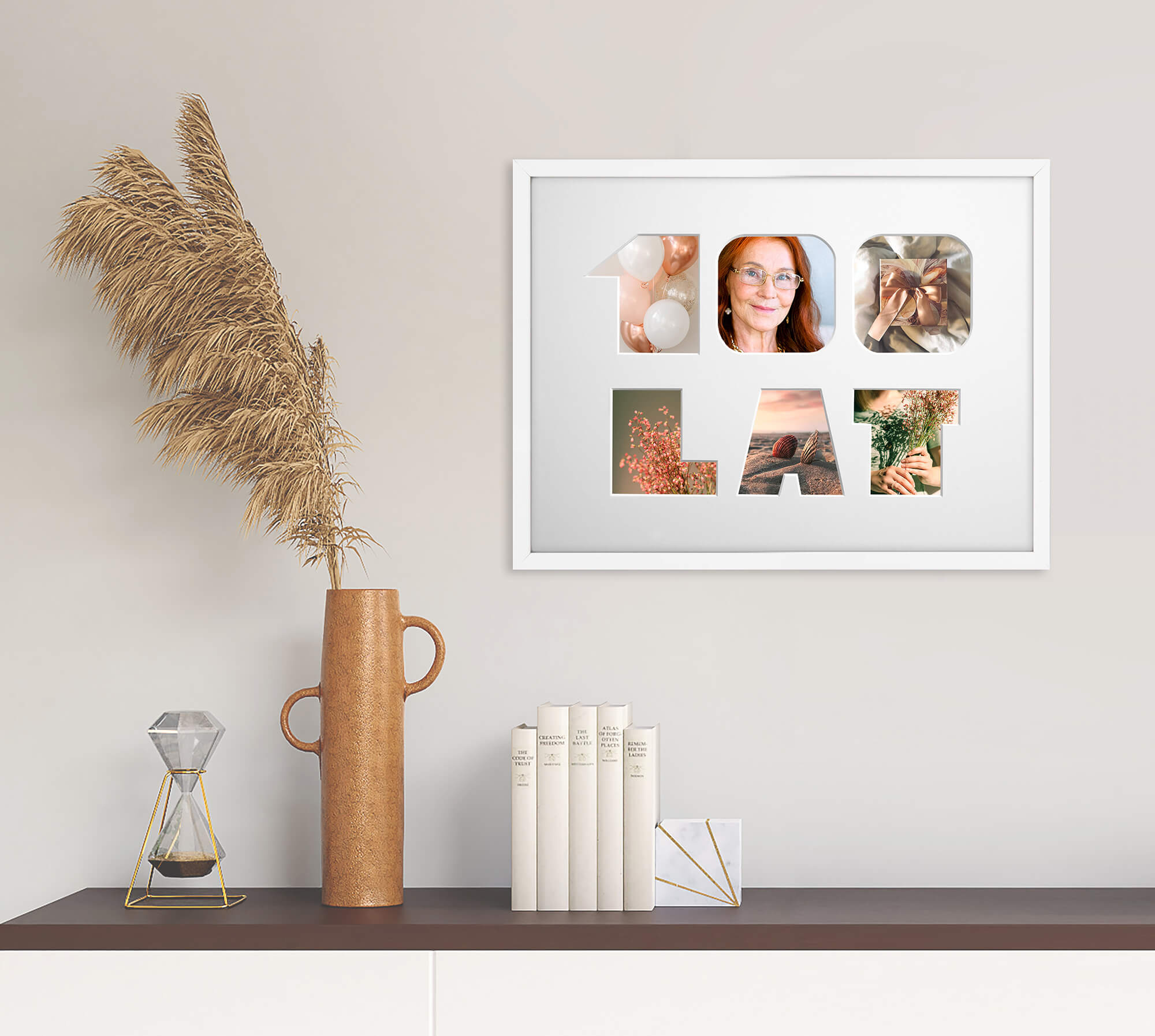 Ramka drewniana na urodziny z passe partout o rozmiarze 30x40 cm