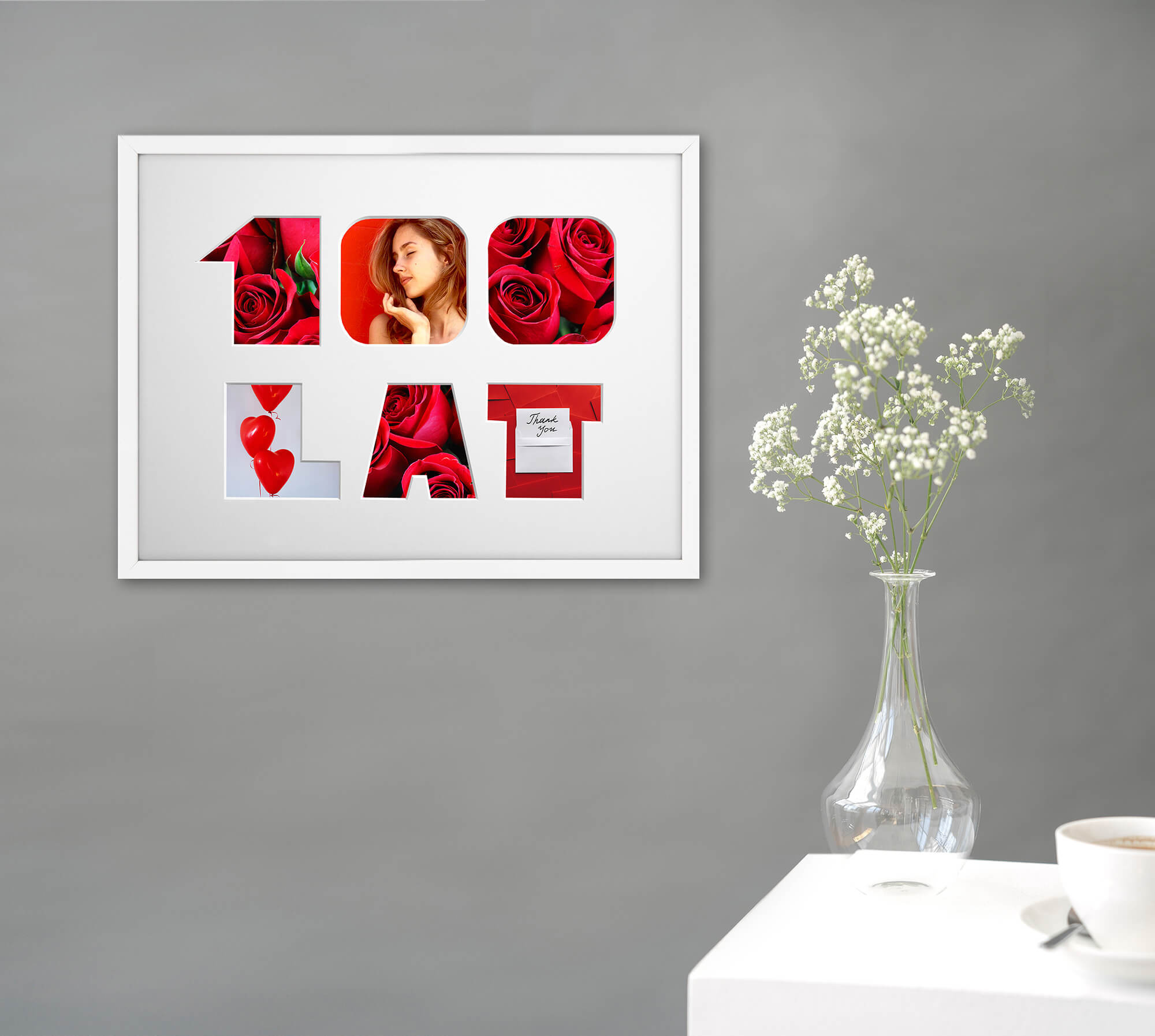 Ramka na URODZINY w kolorze białym. Ramka z passe partout o rozmiarze 30x40 cm