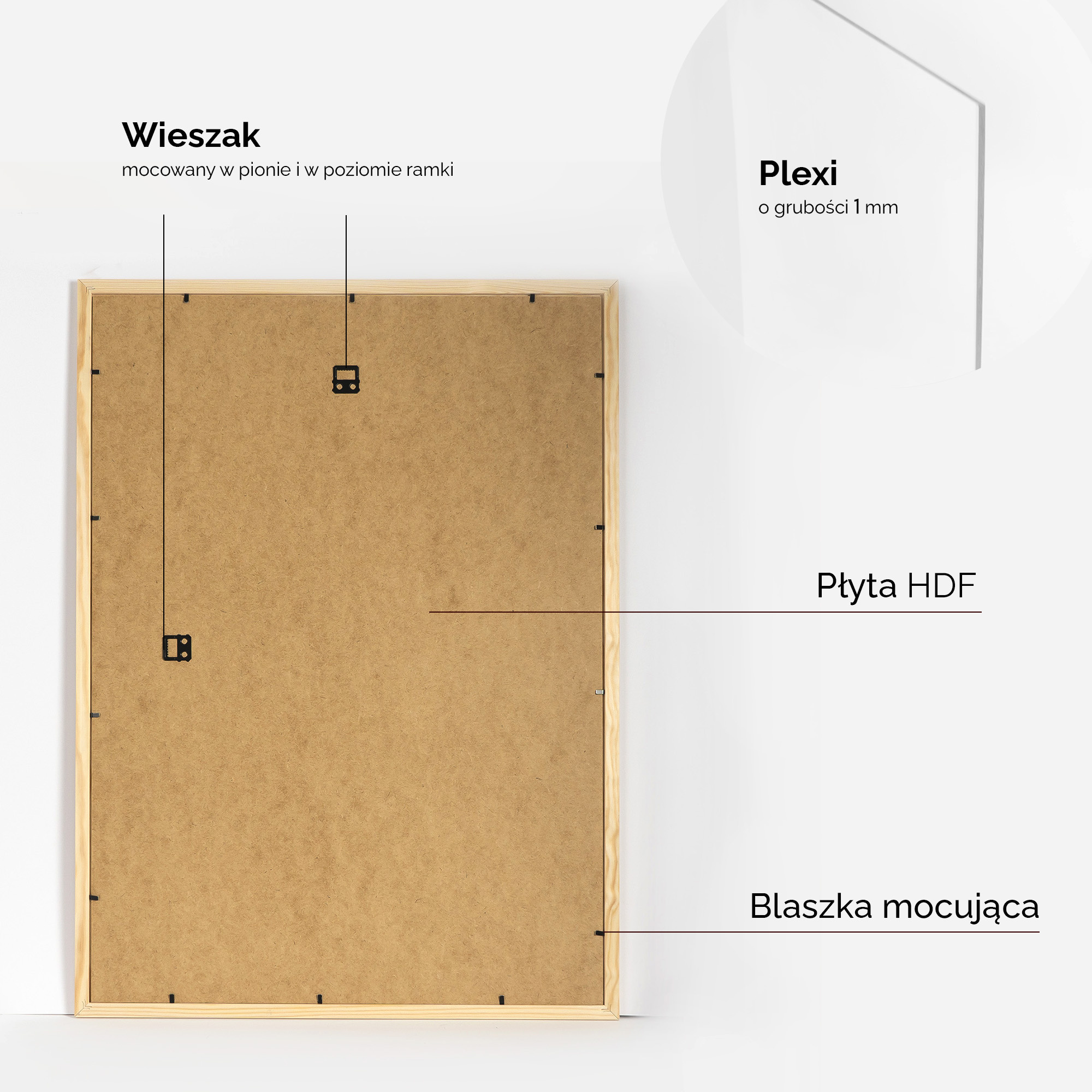 - Ramka wykonana z drewna o profilu 20 mm x 10 mm (szerokość, wysokość)