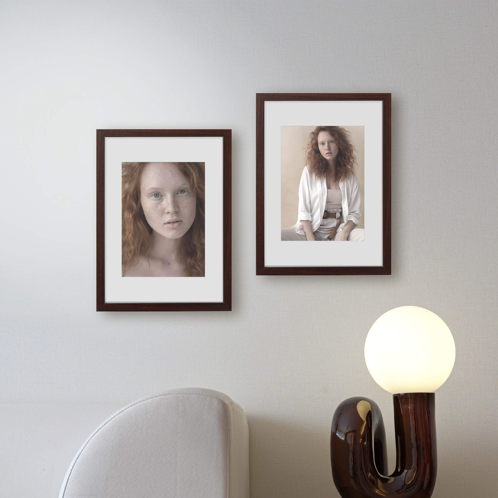 Nowoczesna fotoramka z jasnym passe partout w brązowym kolorze, o przekroju profilu 28x15 mm. Ze względu na wysoki profil nadają oprawionym pracom trójwymiarowości. Zastosowanie zapinek obrotowych czyni oprawę bardzo wygodną i łatwą - umożliwiającą wielokrotną wymianę bez możliwości uszkodzenia prac jaki i samej ramy. Polecane są szczególnie do eksponowania dużych formatów fotografii, plakatów, grafik i dyplomów. W zależności od formatu wyposażona jest w szkło mineralne lub bezbarwne szkło organiczne - wysokiej jakości plexi. Plecki wykonane są z twardej płyty HDF. Ramki na zdjęcia do rozmiaru 18x24 cm dodatkowo posiadają stopkę / nóżkę która pozwala eksponować oprawiony obraz na biurku lub regale. Ramka EXPO dostępna jest w rozmiarach od 13x18 cm do 50x50 cm.