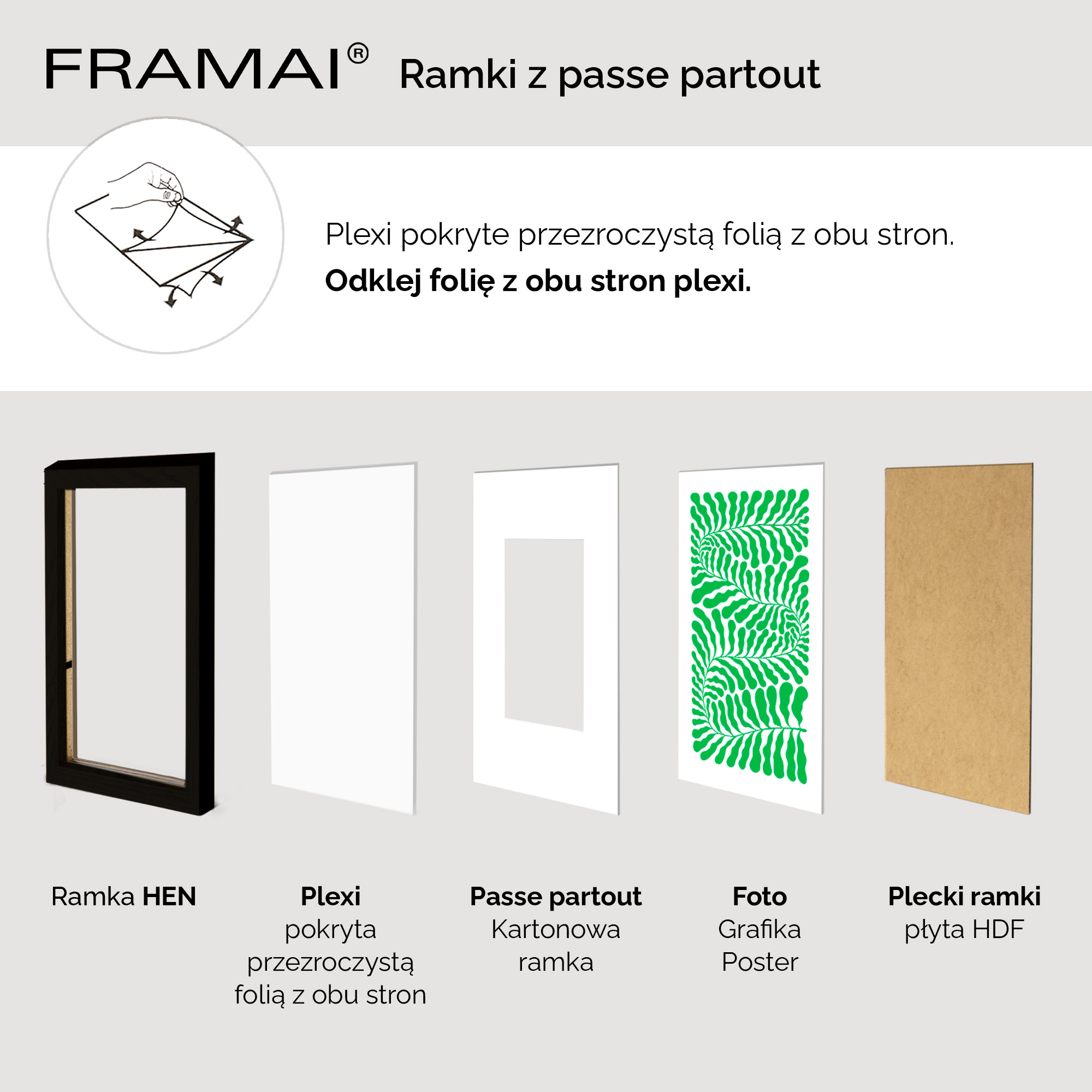 Ramka z passe partout na zdjęcia w rozmiarze 60x80 cm z okienkiem passe partout 50x70 cm