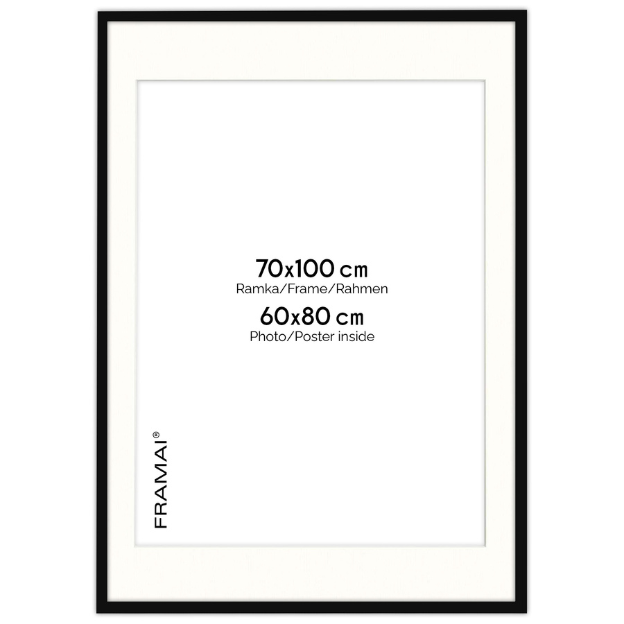 Ramka z passe partout na zdjęcia w rozmiarze 70x100 cm z okienkiem passe partout 60x80 cm