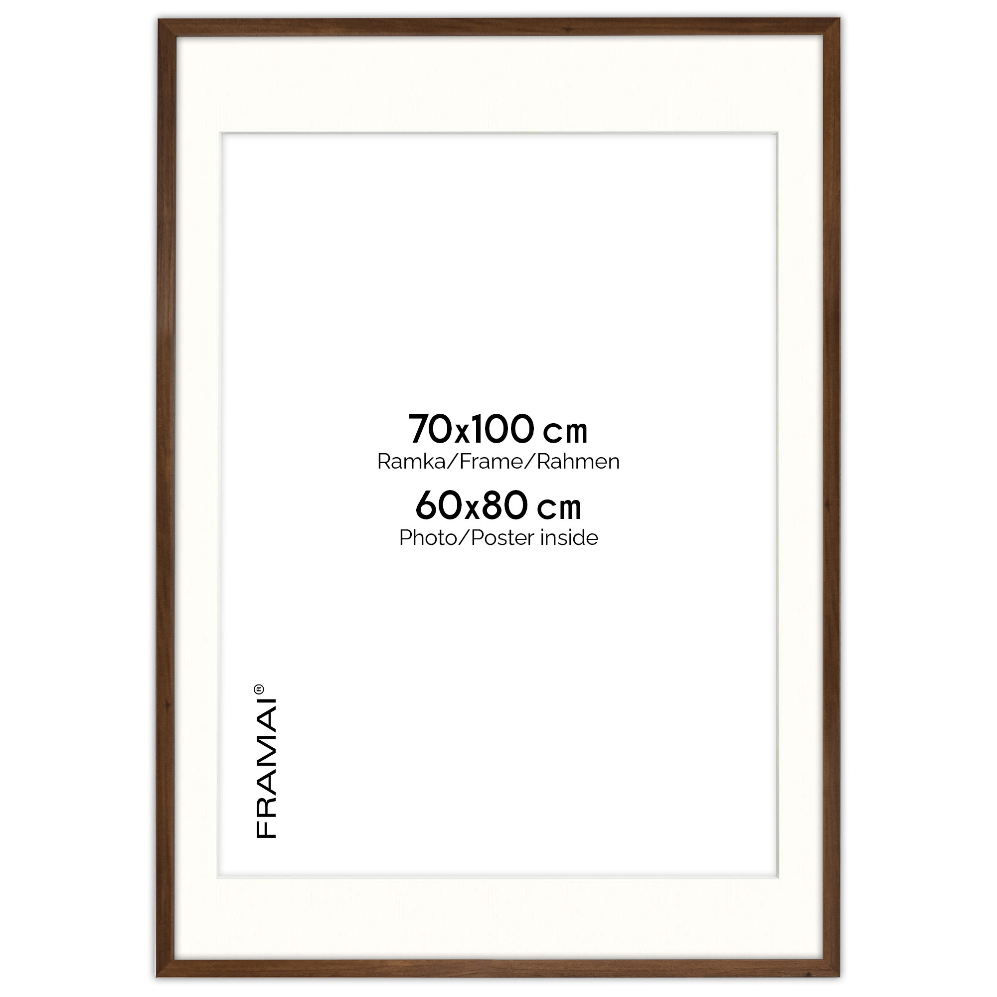 Ramka z passe partout na zdjęcia w rozmiarze 70x100 cm z okienkiem passe partout 60x80 cm