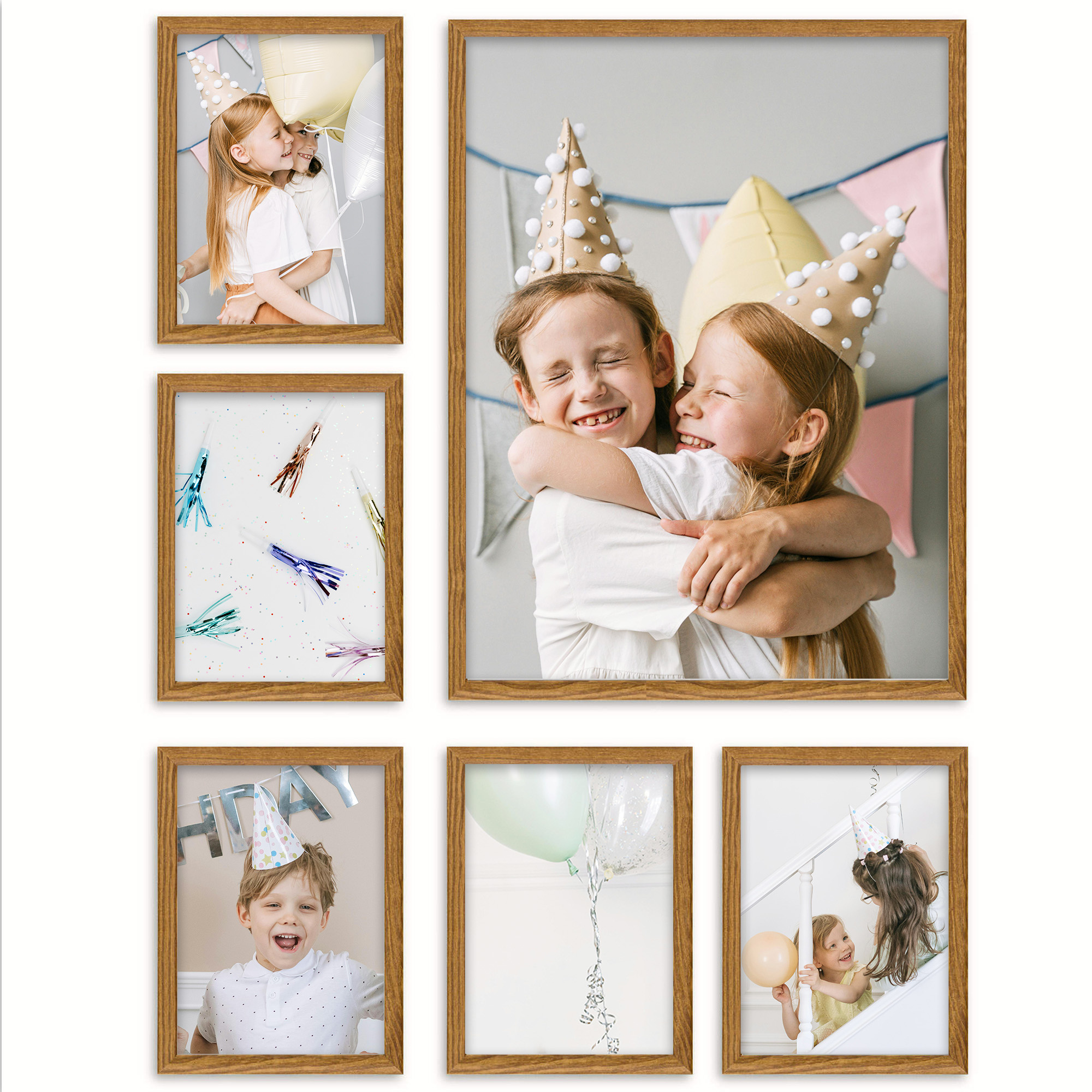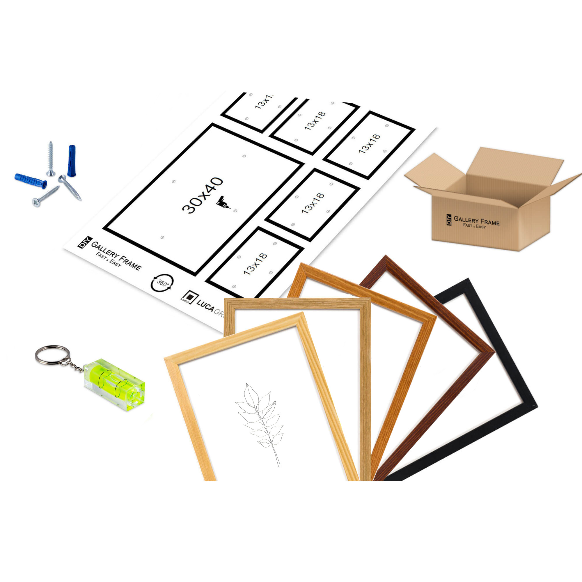 - Zestaw ramek w kolorze dębowym HIT 33 GF0002 zawiera ramki do zdjęć: 5 x 13x18 cm, 1 x 30x40 cm. Wymiar całkowity kompozycji 65x50 cm