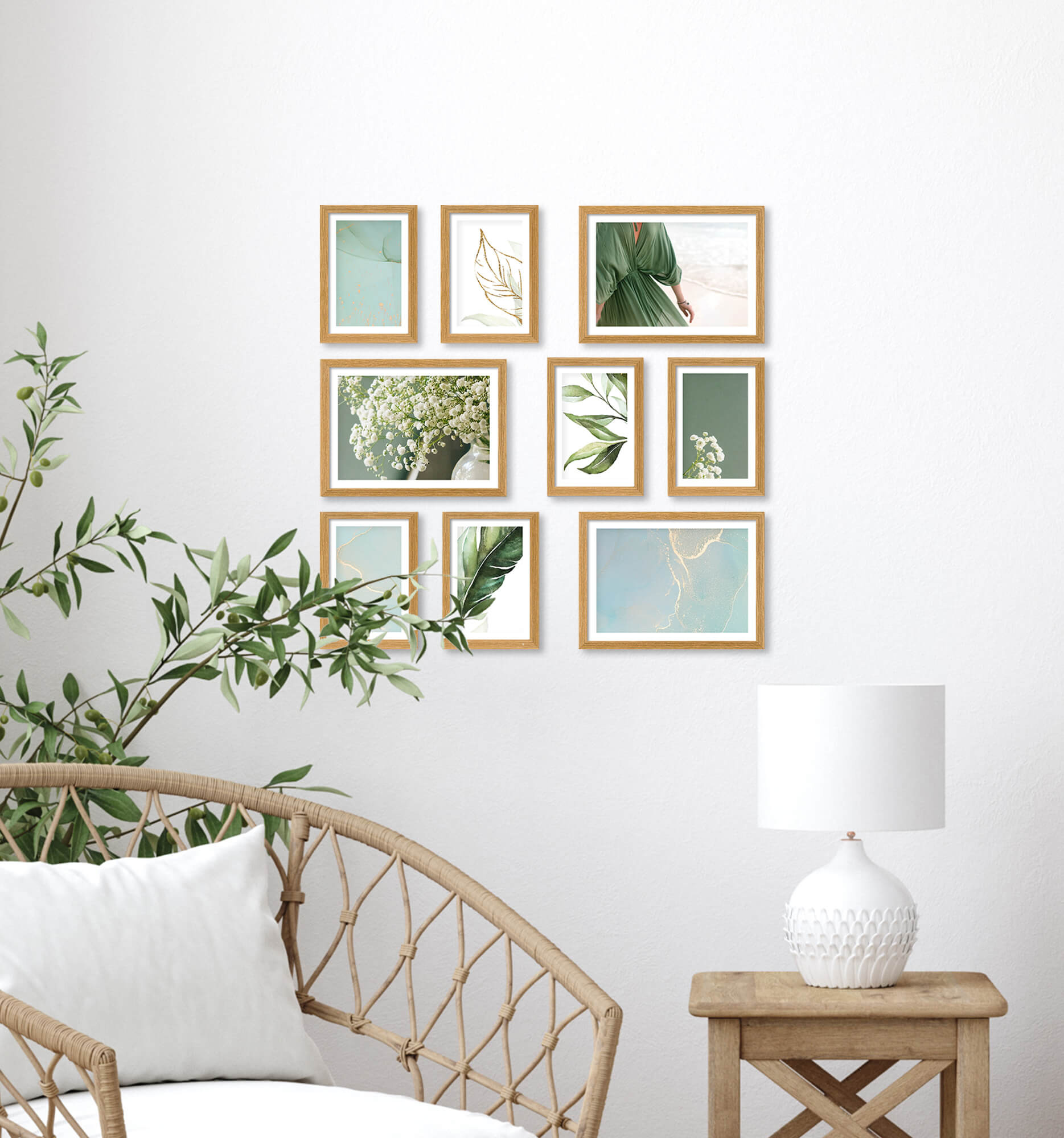 Nowoczesne galerie ścienne to prosty i efektowny sposób na aranżację każdego wnętrza. Dekoracyjny produkt pozwala stworzyć niebanalną kompozycję składającą się z 9 sztuk ramek. Wszystkie ramki zostały wykonane w 100% z drewna wysokiej jakości, dzięki czemu są trwałe i solidne. Galerie ścienne są lekkie i mają subtelny wygląd, co sprawia, że doskonale wyeksponują Twoje fotografie, grafiki oraz plakaty. Klasyczne profile o przekroju 11x14 mm sprawiają, że każda galeria ścienna będzie ponadczasowym dodatkiem do wnętrza. Warto podkreślić, że drewniane przekroje połączone zostały metodą “V-nail”, co wpływa na precyzyjne połączenie narożników.
